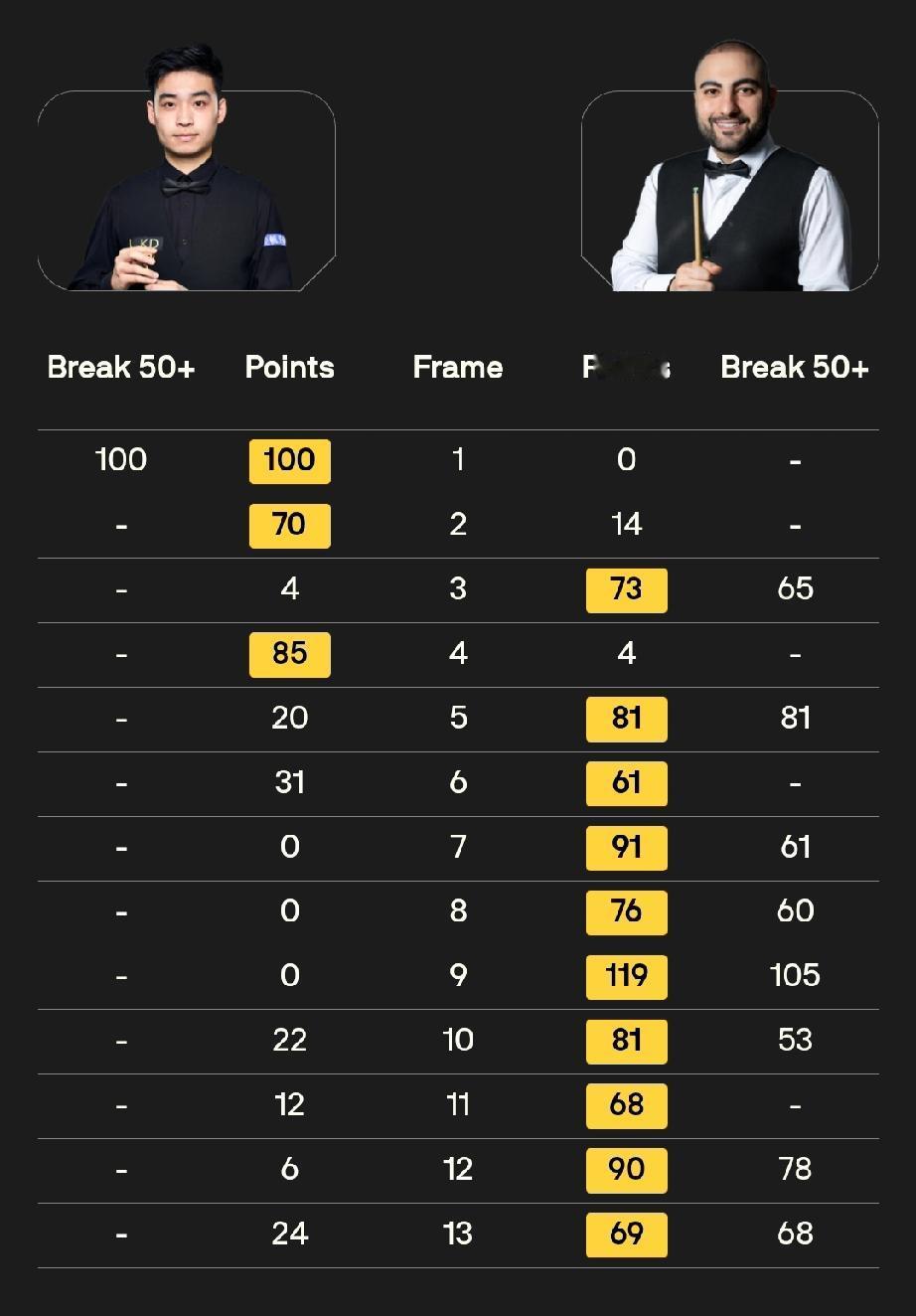 23日斯诺克世锦赛中国军团遭遇重创! 全天三人出场,两人一轮游、一人大比分落后,中国军团遭遇开赛以来最大失利。 23日中国军团战绩: 斯佳辉 3-10 侯赛因·瓦菲 庞俊旭 6-10 尼尔·罗伯逊 肖国栋 2-6 肖恩·墨菲 斯佳辉、庞俊旭无缘16强。斯佳辉被瓦菲九连鞭大比分落败,成为本届比赛唯一的出局的种子选手。 肖国栋发挥失常。 本来对阵墨菲,肖国栋历史战绩占优,尤其是24年的武汉公开赛,开局三杆破百5-1轻松击败过墨菲。没想到本场比赛被打了一个5-0开局,最终以2-6大比分落后结束第一阶段比赛。 今天,中国球员有两场比赛: 17点,肖国栋和墨菲第二阶段比赛;21:30,赵心童和丁俊晖1/8决赛第一阶段比赛。 加油!
