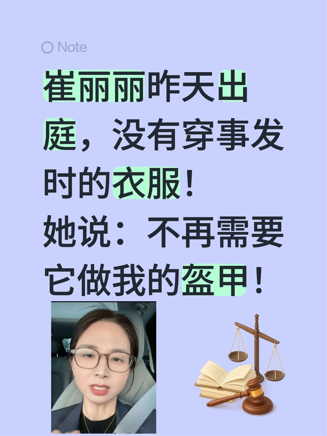 崔丽丽出庭,更强大了!崔丽丽昨天出庭,没有穿事发时的衣服! 她说:不再需要它做我的盔甲!