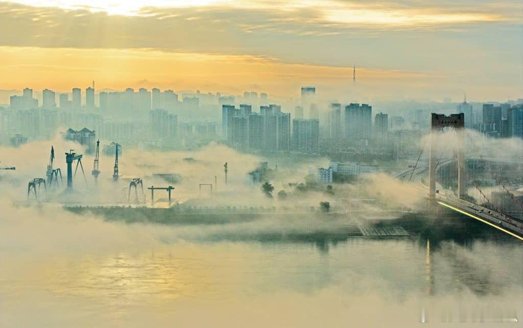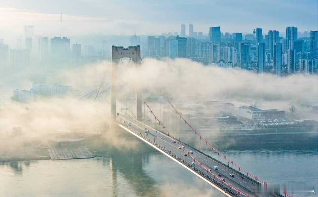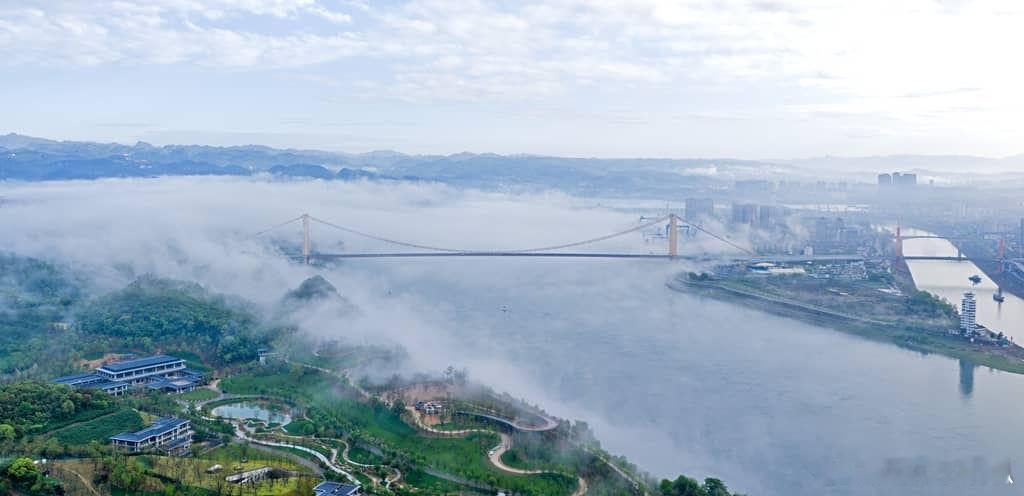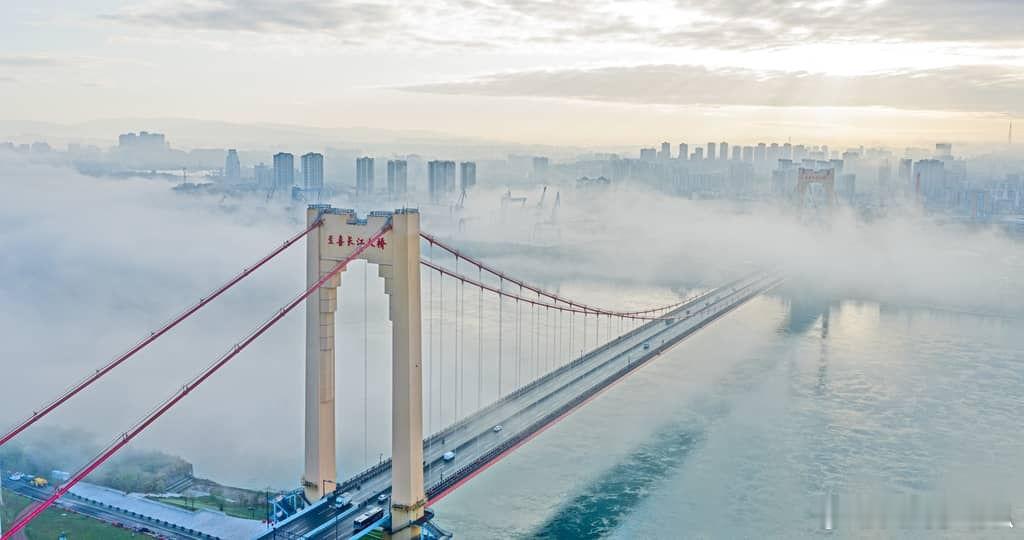 【美丽家乡 湖北宜昌——晨雾隐山 仙境初开】 春日清晨,雨后的湖北宜昌云雾缭绕,空气格外清新。城区地标至喜长江大桥在薄雾与水汽中若隐若现,桥身与江面交相辉映,呈现出如梦似幻的水墨意境。中华美景欣赏