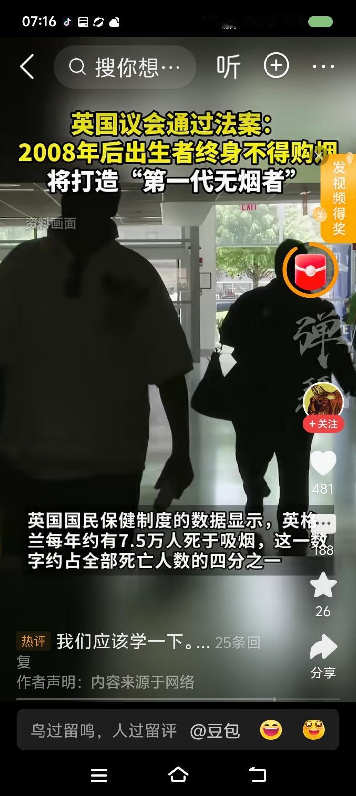 英国要更彻底地禁烟?—— 网上信息:英国制定了法律,2008年及以后出生的人,终生不得购买烟草制品。 点评: 英国禁烟力度大,禁毒力度呢?尚可。只是无死刑。 英国的措施,好不好能不能很好地实行,另论。但评论区一些人的话令人无语了: “为什么好东西总是西方人领先一步?” …… 呵呵。 为什么一些人总是这么贱?总是大煞风景?总是跪舔?总是不计后果为西方摇旗呐喊?有个专家说的好:“那些喊西方好中国不好的人,为什么总喜欢在中国待着?他们不是应该出国为他们的精神母国效力吗?”