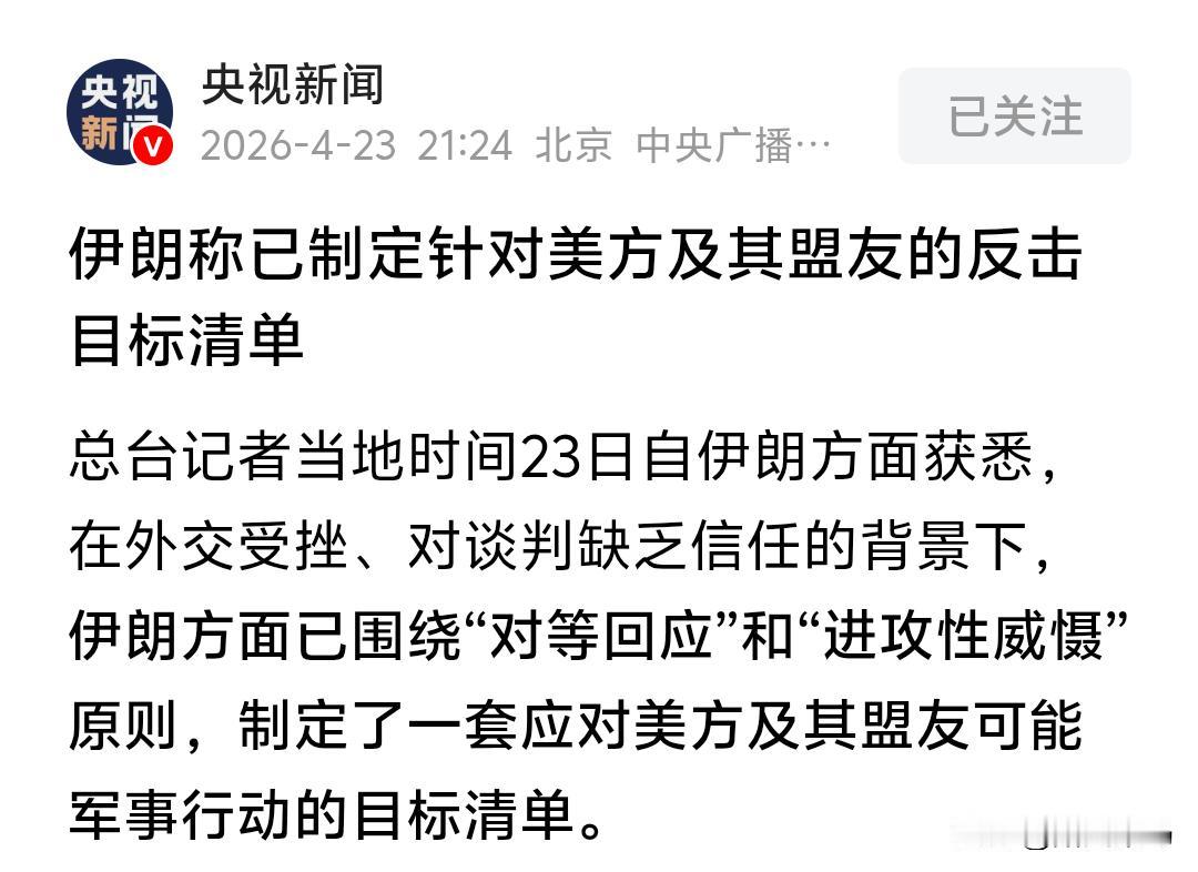 跟大伙聊个刚出来的重磅消息,伊朗这次是彻底把底牌亮出来了,一点都不藏着掖着。 当地时间23号,伊朗直接放出消息,已经敲定了一套针对美国及其盟友的反击目标清单,说白了,就是你敢动手,我就精准还击,而且每一步都算得明明白白。 能走到这一步,根本原因就是外交谈不拢,伊朗对和美国的谈判早就没了信任,索性不再靠嘴皮子,直接拿出实打实的威慑手段,核心就两个原则,你打我一拳,我原样还回去,而且还要主动出击,让你不敢轻易动我。 这份清单狠就狠在,完全是点对点的对等报复,没有半点含糊。你炸伊朗的发电厂,伊朗就用导弹和无人机,去炸以色列和美国其他盟友的电厂;你敢动伊朗的油气设施,伊朗就盯着对方的关键能源设施打,直接要让全球石油日产量一年少掉2500万桶,这一招直接掐住全球能源的脖子。 更绝的是后续的反击手段,要是伊朗军政高官被暗杀,对方的信息技术、人工智能中心就会成靶子;要是有人敢侵占伊朗岛屿、港口,伊朗会集中弹道导弹、巡航导弹、无人机,疯狂围攻对方的航母和攻击直升机;要是海上被封锁,曼德海峡、霍尔木兹海峡直接给你封死,全球石油运输线彻底断掉;就算美军敢从地区基地发动地面入侵,伊朗也会联合当地武装和民众,打地面战抓美军士兵,甚至不排除突袭美国在地区外的利益。 我看到这些内容,第一反应就是,中东这潭水,这下真的要彻底搅浑了。有军事专家分析,一旦打起来,伊朗的抵抗阵线一加入,战火瞬间就会蔓延整个中东,以色列、海湾产油国首当其冲,根本躲不掉。 而且伊朗这不是单纯的防御,是进攻性威慑,出手就会让对方付出承受不起的代价。现在看似暂时停火,不过是阶段性的缓冲,压根不算彻底安稳。 真的有点担心,一旦重要航道被堵、能源设施被毁,全球能源市场都会遭遇前所未有的危机,没有任何国家能独善其身。 伊朗这波操作,就是在逼美国及其盟友三思而后行,用最直接的方式告诉对方,战争没有赢家,动手就要承担毁灭性的后果,中东局势接下来怎么走,每一步都牵着全世界的神经。 作品声明:仅在头条发布,观点不代表平台立场。