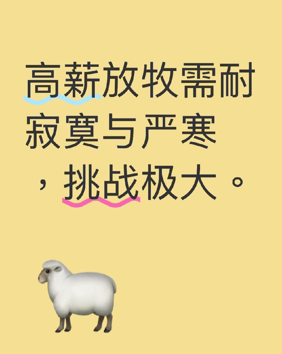 月薪1.6万,在零下40度的草原放牧3000只羊,这样的工作你敢挑战吗? 近日,内蒙古锡林浩特一家食品公司开出了诱人的高薪,招聘人员管理近3000只羊。这份工作位于三万多亩的牧区,远离市区300公里,常年人烟稀少。虽然公司提供食宿,还配备了马匹和摩托车,并有专人运送物资,但工作全年无休,劳动强度可不小。夏季,员工们要忙着放牧,而到了冬季,每天得喂羊两次,每次都要耗时两个多小时。雇主更希望招聘夫妻搭档,一人负责放羊,另一人则负责做饭,相互照应。而且,这份工作至少得干一年,得耐得住寂寞才行。夏季,员工们可以住在蒙古包里,享受宜人的环境;但到了冬季,长达半年,最低气温能降到零下四十多度,得自己烧炉取暖。虽然有Wi-Fi,但雨雪天气常常断网,手机信号也弱。 这份高薪工作背后,是草原夏冬两季截然不同的生存挑战,你愿意为了高薪去体验这样的生活吗?或者,你更看重工作的舒适度?快来评论区说说你的看法吧!内蒙招