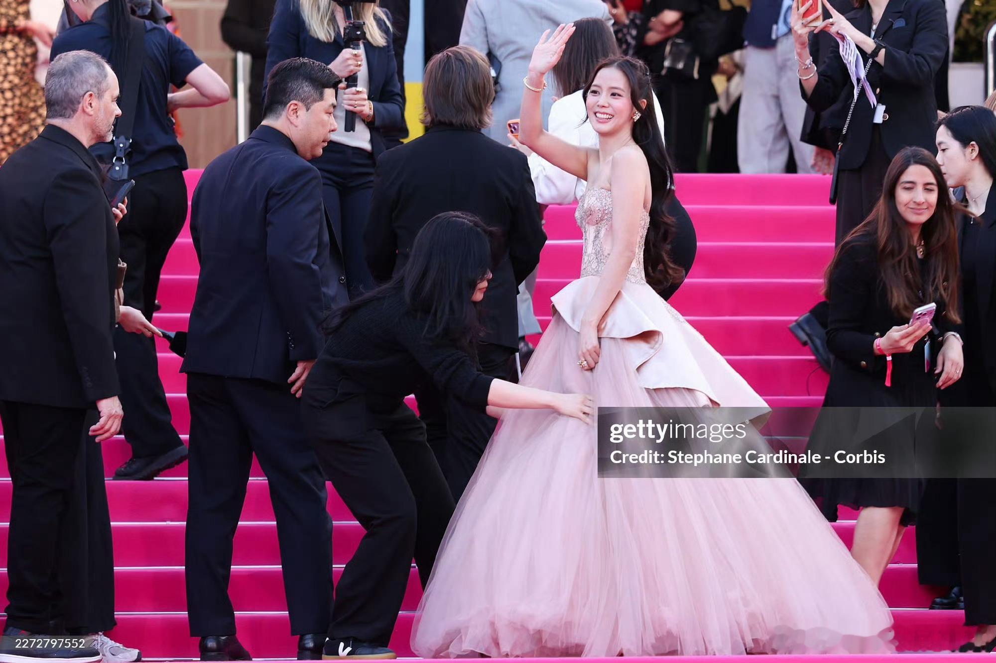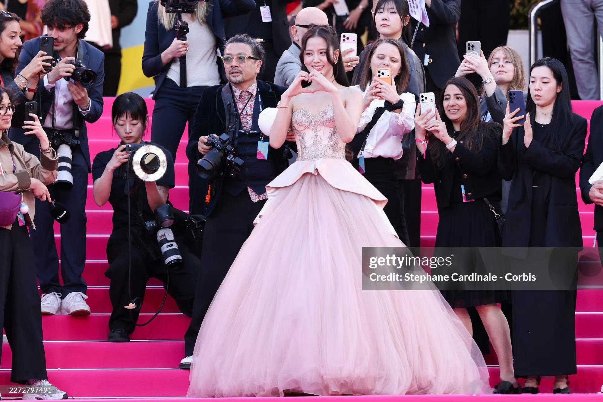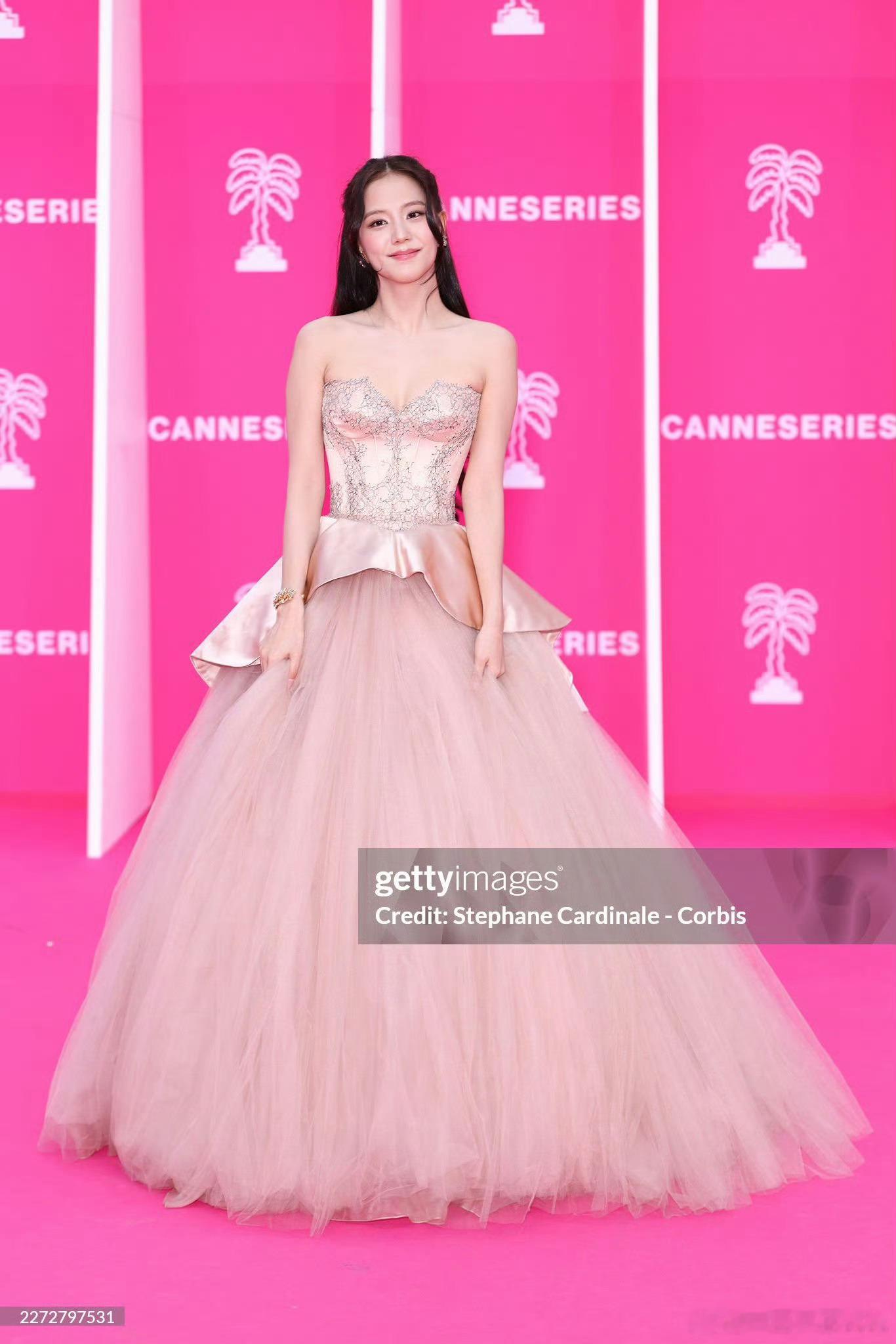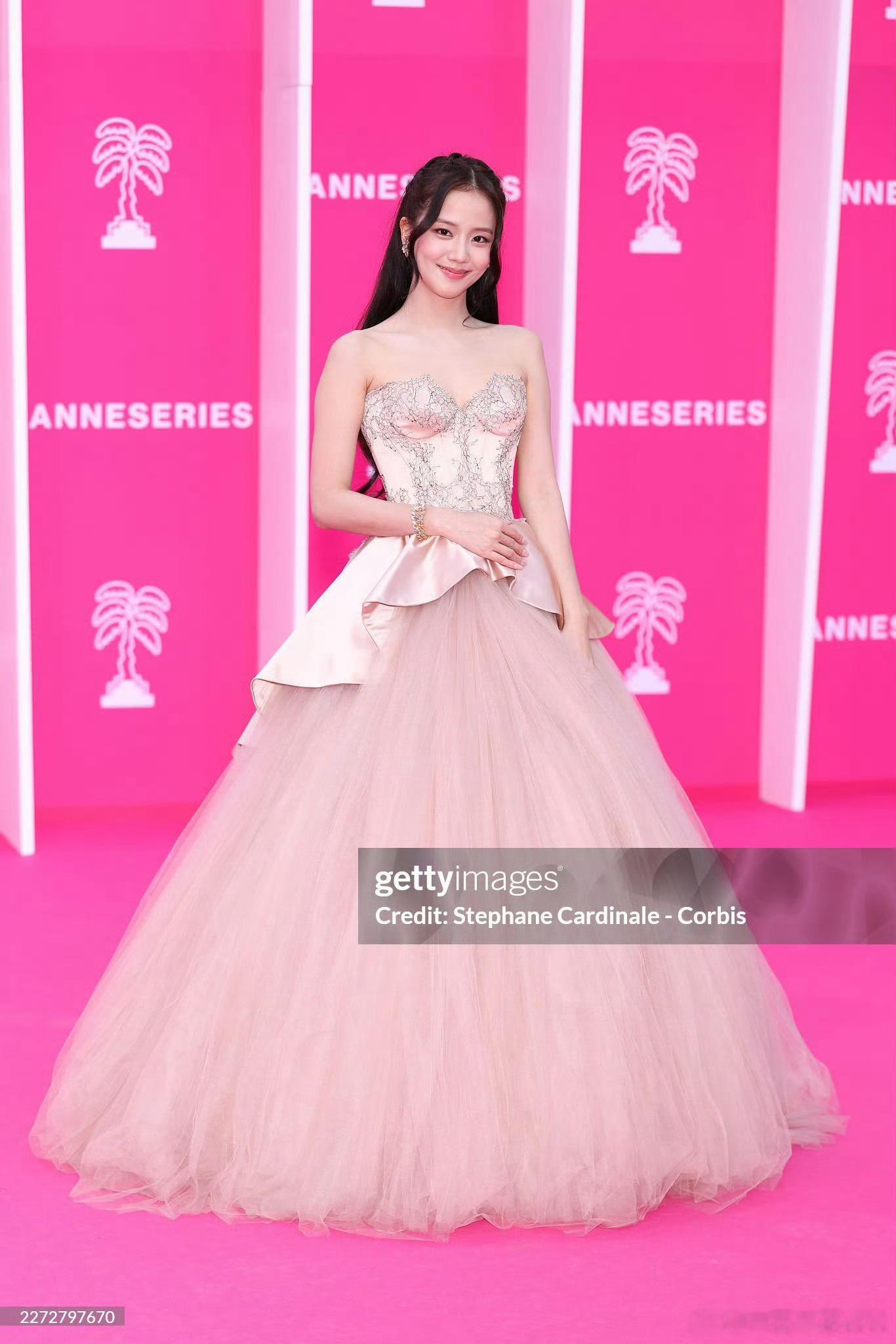 Jisoo 金智秀出席戛纳国际电视剧节红毯 ,上身本土品牌 Miss Sohee 2026 春夏高级定制粉色礼服,搭配了 Cartier 珠宝亮相 !凭借在《订阅男友》中的表演拿下戛纳国际剧集节新星奖🏆秀秀姐那个演技都能拿奖