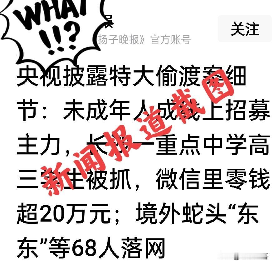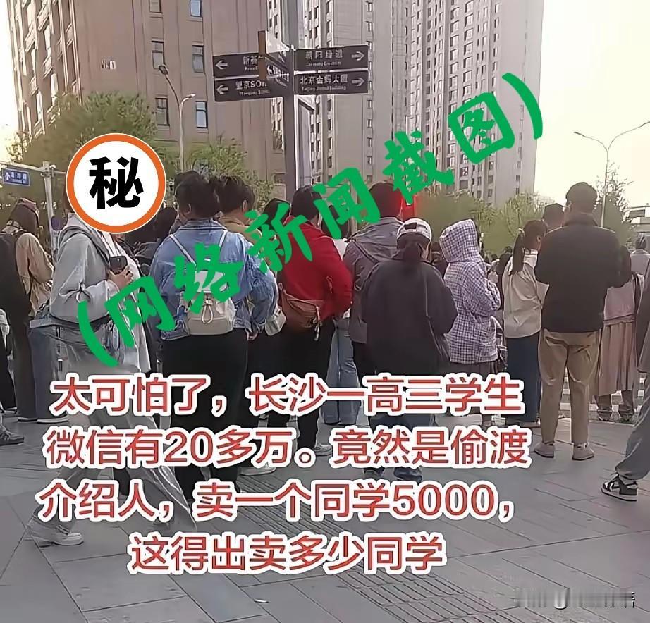偷渡招募人竟是一重点高中高三学生,您敢信吗? 中国每年都有大量失踪人口,除了被拐卖的妇女儿童,最近几年,青少年失踪案也屡见不鲜,真相,太扎心了! 【说明: 本文信息来源——央视新闻、扬子晚报、大象新闻、观威海】 近日,广西钦州市公安局情报指挥中心通报了一起重大跨国偷渡案。 办案人员成功斩断了钦州、防城港两条境外蛇头的偷渡通道,抓获涉案人员68人。 令人震惊的是,偷渡犯罪集团竟然把犯罪黑手伸向未成年人,40%的涉案人员是16-18岁未成年人。 令人震惊的是,其中一名线上“招募者”,竟是长沙某重点高中的高三学生! 这名学生被抓获时,手机微信上“零钱”20多万,都是他“卖”同学、朋友,得到的“好处费”(成功介绍一名偷渡者,获得5000元提成)。 太锥心了! 亲,不要以为您孩子上了重点高中甚至上了大学就可以“高枕无忧”,不用再管了。 因为,如果交友不慎,遇到这种偷渡犯罪集团的“蛇头招募人” 同学或“朋友”,一时的轻信与疏忽,可能就被卖到境外(或者把别人卖到境外),把自己和他人的人生送上不归路…… @红尘禅语 看到网上广西钦州市公安机关破获的这起重大跨国偷渡案新闻,震惊,揪心! 作为一名在基层学校与未成年人打了几十年交道的基础教育工作者,感觉自己有责任、有必要分享自己对这类案件的一些及看法。 【提醒家有青少年的父母】 1.除了卷孩子学习,也请关注您家宝贝的交友圈! 如果您给的零花钱有限,孩子却突然花钱大手大脚,甚至,花钱如流水,请一定一定关注孩子那些钱的来源,看看孩子结交了哪些朋友? 特别是,要关注那些头脑灵活、总想挣大钱、打字快、电脑玩的溜的孩子…… 2.要让孩子养成外出行踪报备的习惯! 3.跟孩子一起观看公安机关这方面案件侦破的案例。 4.拒绝境外高薪诱惑的陷阱。 5.拒绝陌生人或身边同学、朋友外出“免费”外出旅行之类的邀约。 孩子的人身安全无小事,希望各位家有半大孩子的家长,一定要警钟长鸣!