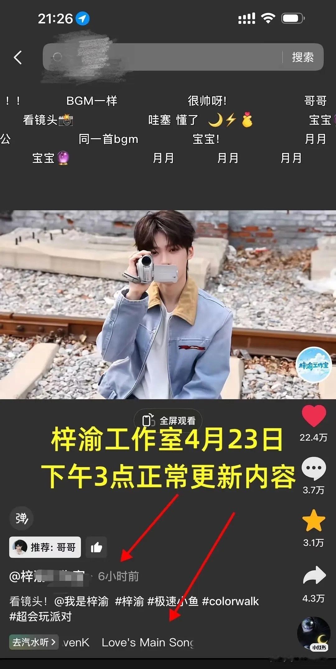 4月23日梓渝工作室率先发布物料使用专属BGM,随后对方火速跟风同款配乐,同步更换歌曲,一些yxh在短时间内集体联动捆绑发话题。刻意重合的操作痕迹明显,恶 意碰瓷 蹭流、强行捆 绑博热 度的行为毫无底线。拒绝无端捆 绑,抵制刻意蹭热的yx,艺人发展应专注自身,体面行事!!!ps:少爷觉得各自发展,在无售后!!!梓渝