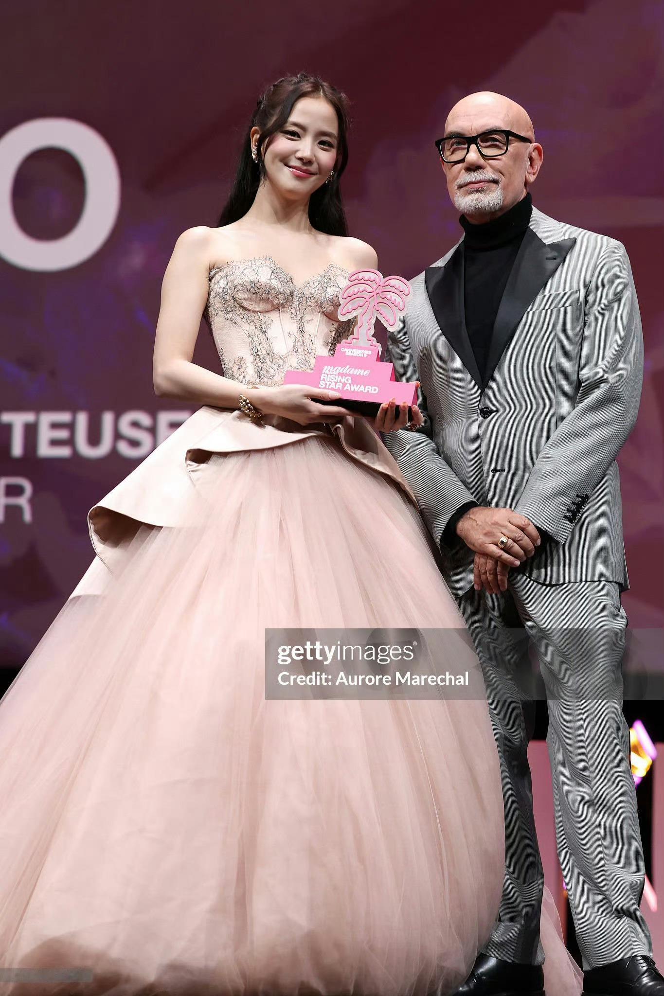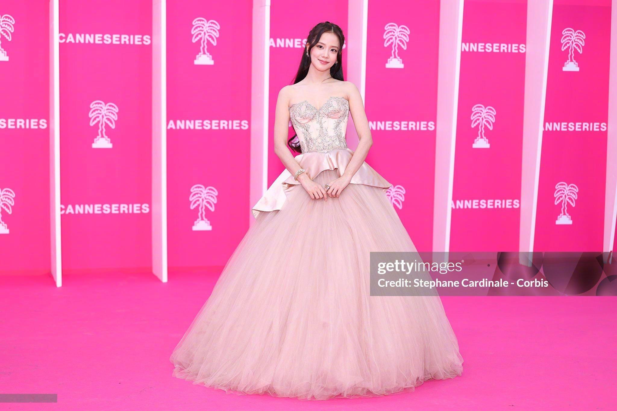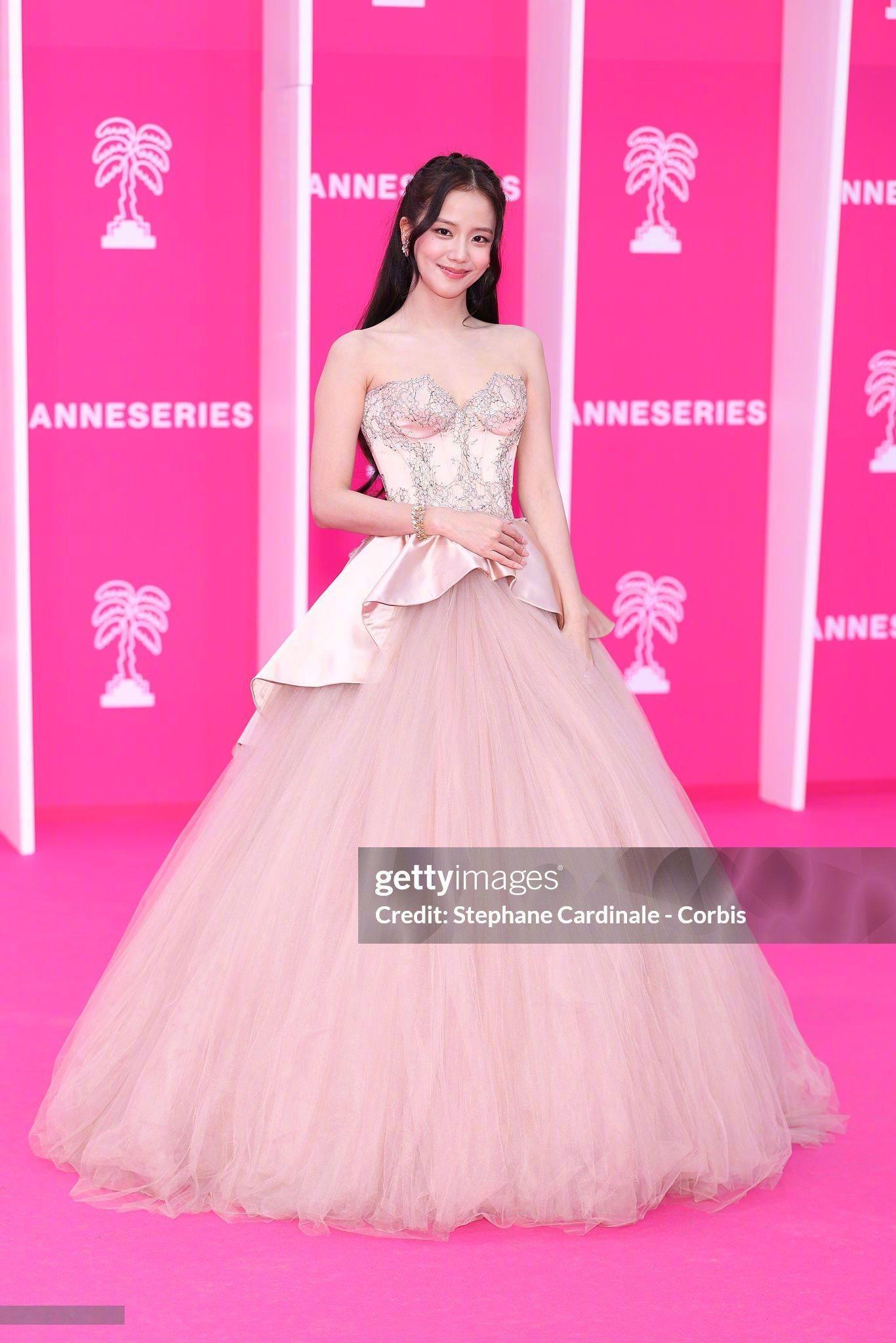 金智秀 亮相戛纳国际电视剧节,身着Miss Sohee 2026春夏高定登场,搭配卡地亚珠宝,尽显温柔优雅的气质。同时拿到“Madame Figaro新星奖”,G社生图就很美!状态太过靓丽~ 💗🌸💕 出席戛纳粉毯的金智秀时尚灵感解读