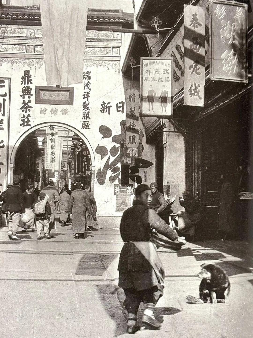 1919年,杭州南宋御街,满街林立的牌匾、墙书、商幌,砖木铺面、雕花拱门完整留存千年街巷肌理。满街木匾商幌林立,鼎兴茶庄、绸缎老号古韵悠长,亦有西洋呢绒、新式时装广告横挂檐间,新旧百业汇于一街,是江南省会百年不衰的商脉心脏。 街上全是往来逛街的本地人,腰间系着布围裙的街边商铺少年伙计,步履匆匆赶路,街边暖阳里静蹲的本土老犬,满街都是鲜活又古朴的江南市井烟火。