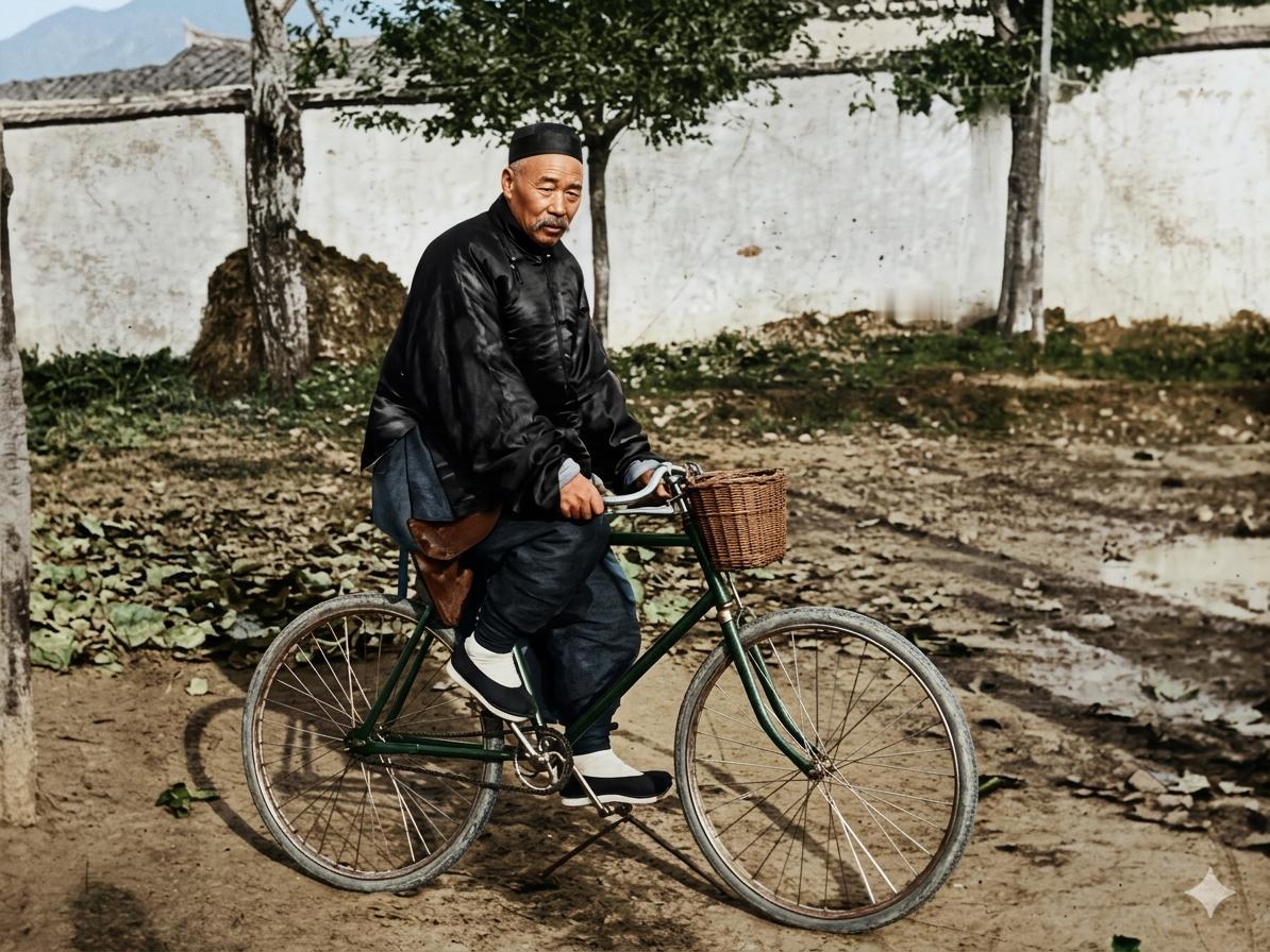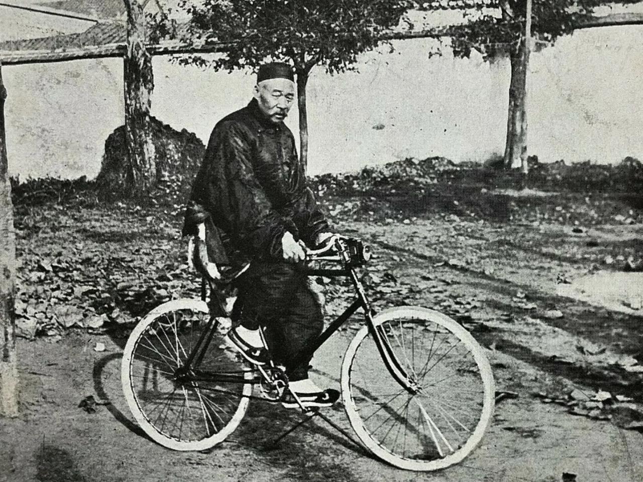 照片里骑着自行车的老头,是清朝正一品建威将军、宜昌总兵傅廷臣。 大清祖制铁规严明,文官坐轿,武官骑马。身为手握兵权的总兵将军,他常年违制乘轿,沉溺安逸,尽失武人风骨,终被湖广总督张之洞上奏弹劾,革职罢官、摘去顶戴花翎。 1907年罢官归隐之后,这位老将全然敞开胸襟,从容驾驭彼时罕见的西洋单车,大轮辐条车架,是当时仅极少数上层权贵才能接触到的西方近代新奇器物。