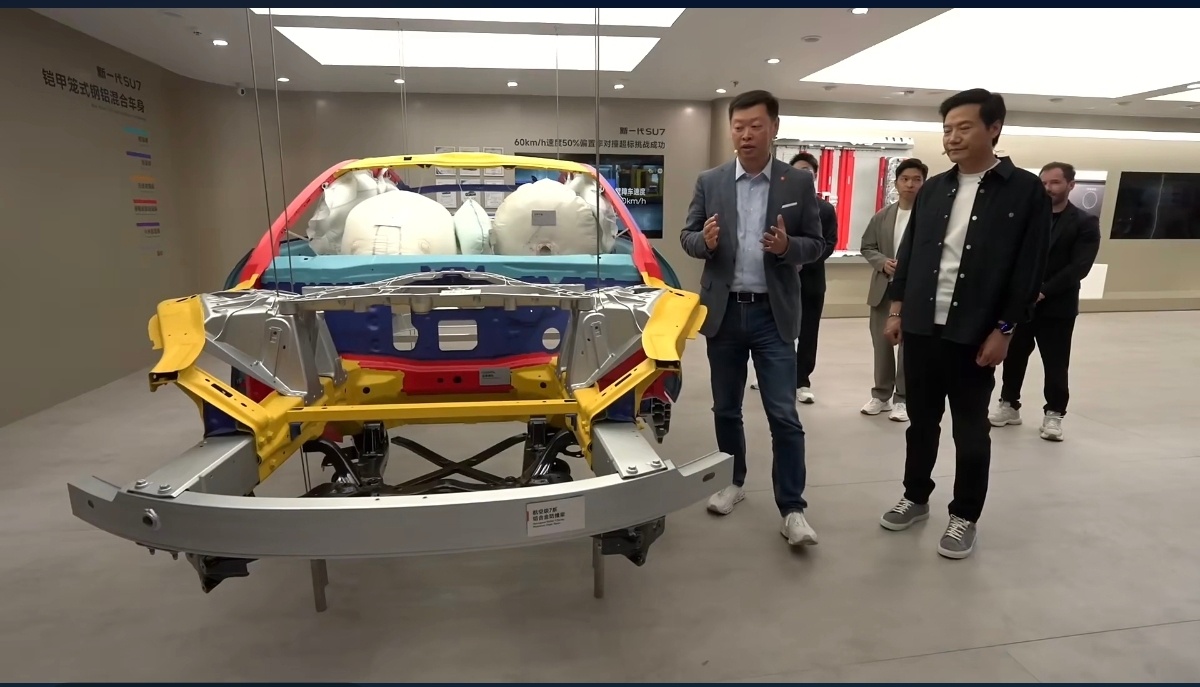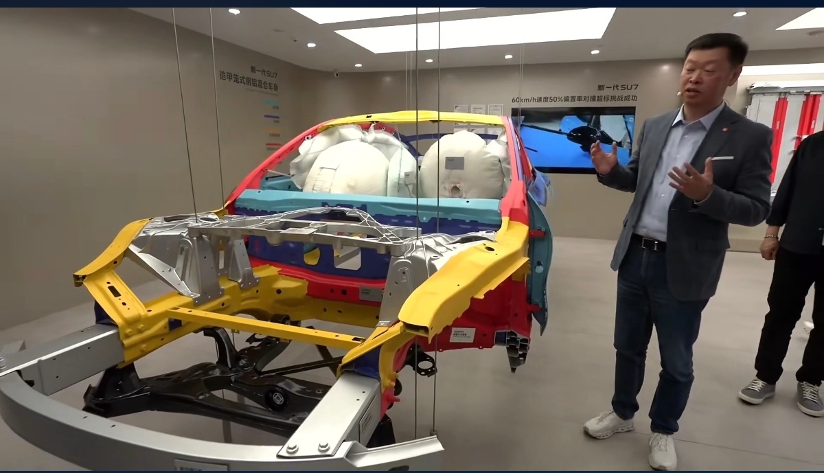 胡峥楠在介绍新一代SU7 白车身结构~
