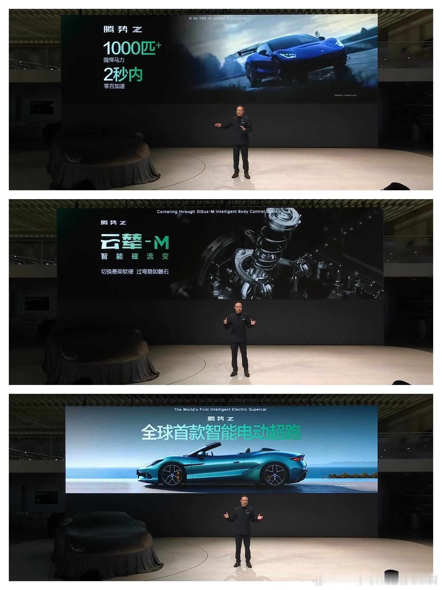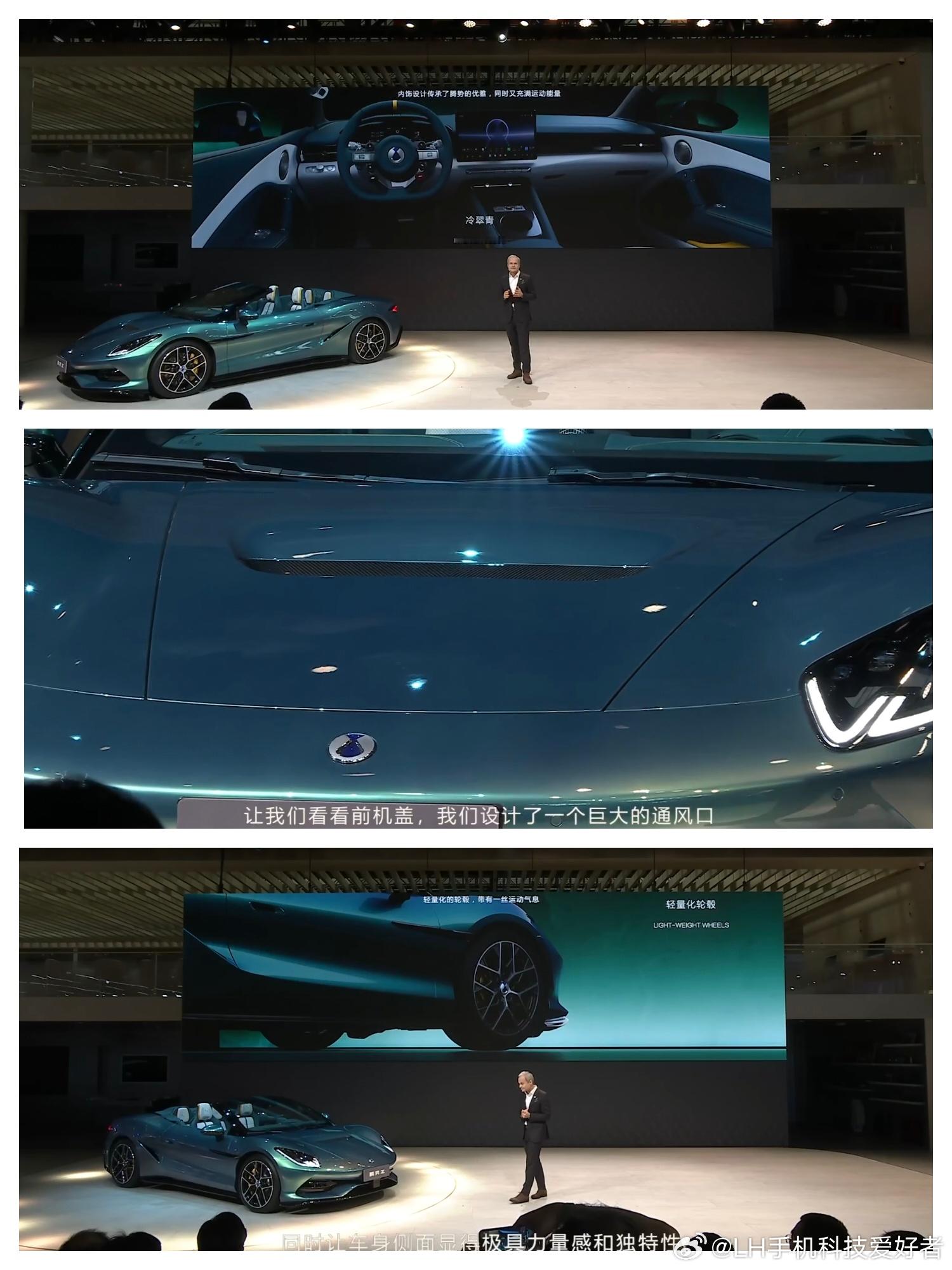 1000匹马力,零百加速2秒以内;十几种外观颜色;云辇M智能磁流变悬架;前机盖风道等等。还是主打运动性能,漂移都玩出新的花样了。4座布局,但敞篷版和赛道版还是不一样的,赛道版有大尾翼,正在纽北赛道测试,预计成绩会很不错。