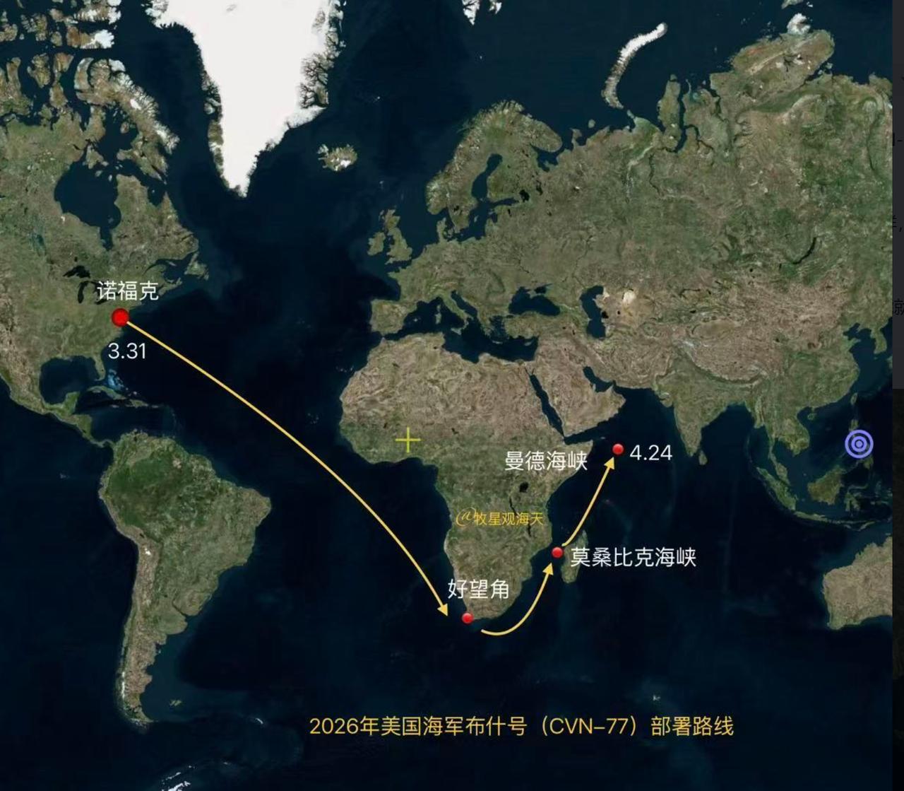 布什号就位,已经抵达阿拉伯海。 那么问题来了,布什号此行的任务是什么? 1、与福特号、林肯号组成三航母打击群,发起对伊朗的新一轮袭击? 2、福特号超期部署,需要回港休整,布什号只是来乱换的? 3、布什号部署在亚丁湾附近,准备对胡塞武装进行打击? 你认为,布什号的任务是什么?