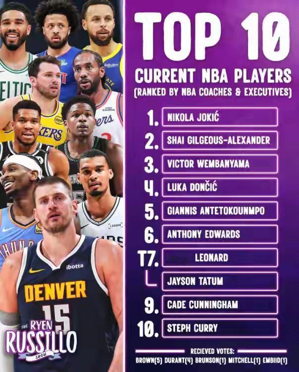 这些教练和高管胡说八道, 评选的现役前十竟然没有詹姆斯。 战役前五约基奇、亚历山大、文班亚马、东契奇和字母哥, 没有一位能带领现在的湖人, 季后赛能连续赢杜兰特的火箭两场。 约基奇还有点希望能赢一场, 亚历山大靠肖华照顾也能赢一场, 东契奇肯定被火箭横扫, 文班亚马太年轻而且身体脆, 字母哥竟然连季后赛也进不去。 这几个人凭啥能前五, 真是不要脸张口胡说。