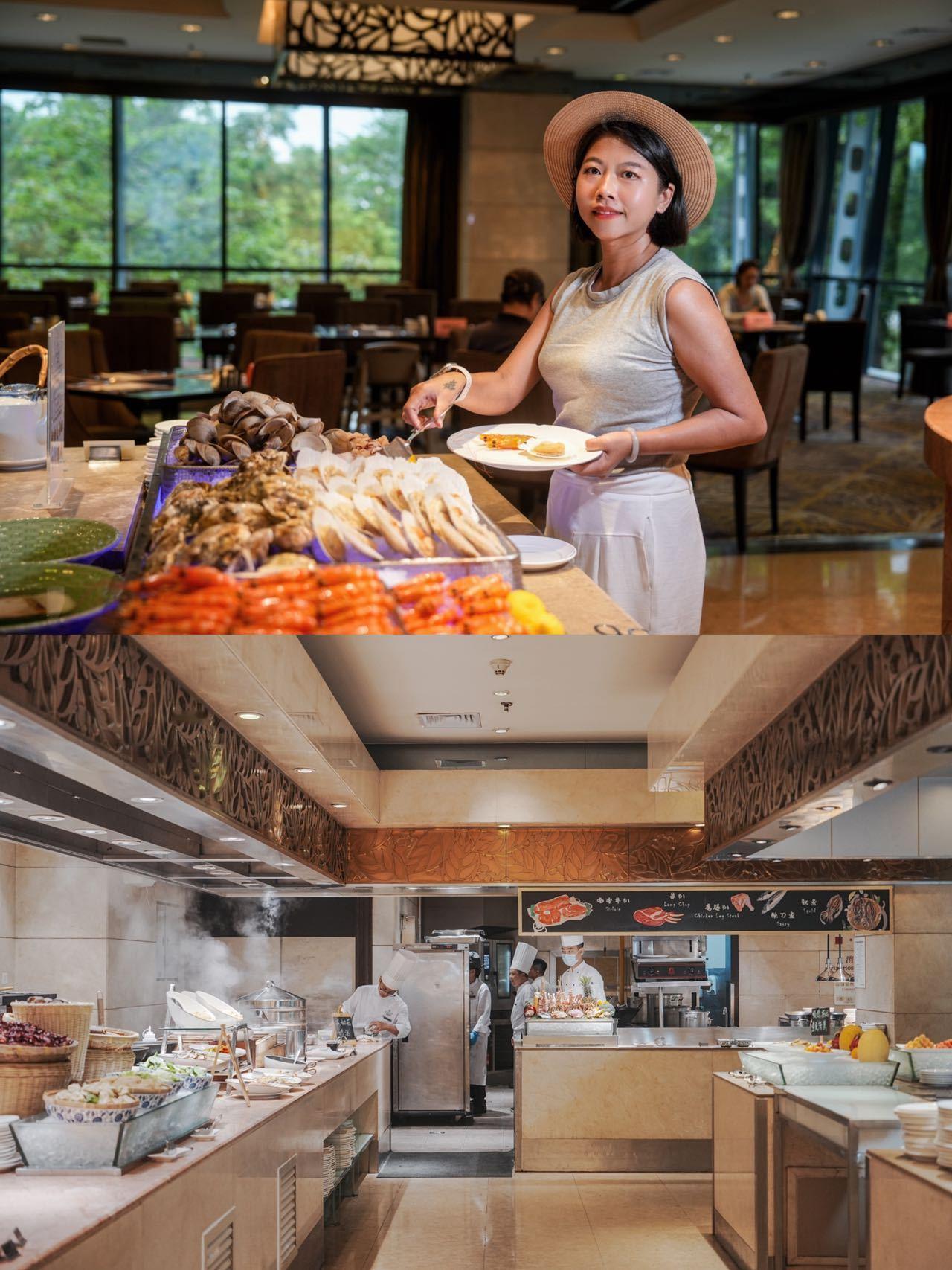 4️⃣酒店美食|舌尖上的满足✅ 盛宴西餐厅干饭人必冲!餐品种类超丰富,中西料理、海鲜、甜品全都有,食材新鲜,味道在线,不管早餐还是晚餐,吃到扶墙出!✅自助早餐品类超全的自助早餐,涵盖中式面点、西式烘焙、热菜、粥品、水果、饮品等,现做现吃新鲜可口,开启元气满满的一天,懒人早餐直接搞定。✅ 行政酒廊专属静谧空间,茶点、酒水都很精致,和朋友小坐聊天,或者独处发呆,都超惬意,氛围感拉满。
