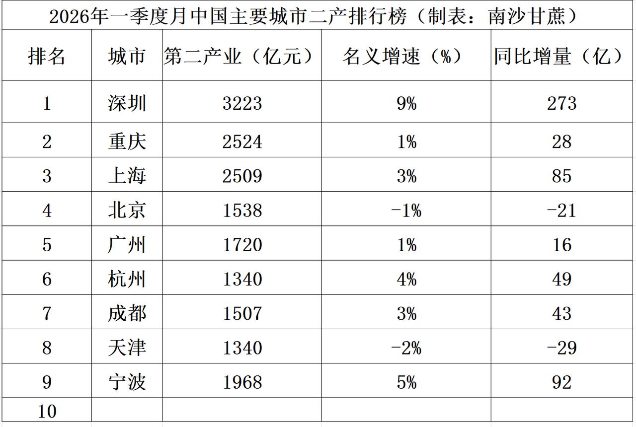 发现没?世界工业和制造业看中国!中国工业和制造业看深圳! 这句话真的是没有人不服,2026年一季度深圳第二产业增加值领跑全国所有城市,在最高基数下实现了最高速度的增长,遥遥领先第二名和第三名,那么为什么深圳的工业和制造业如此强大呢?深圳中国工业第一城地位为什么如此稳固呢? 笔者研究发现,深圳工业的强大是得益于其拥有强大的工业和制造巨头企业,比如年营业收入超过8000亿元的三巨头,他们分别是2025年营业收入超过8000亿元的比亚迪集团,营业收入超过8900亿元的华为公司、营业收入超过9000亿元的深圳工业富联,还有2025年营业收入超过3000亿元的立讯精密,营业收入超过2500亿元的中国电子信息产业集团,营业收入超过1500亿元的中广核集团、中集集团,年营业收入超过1200亿元的中兴通讯、神州数码集团,年营业收入超过1000亿元的荣耀、华星光电、大疆等等众多行业领军企业。 当然了,大企业顶天立地之外深圳的中型工业和制造业企业同样铺天盖地比如欣旺达,欧菲光、深南电路、汇川技术、新凯来、鹏鼎控股、迈瑞医疗、德明利、佰维存储、江波龙等众多行业领军企业,另外这些年深圳投资几千亿元布局集成电路半导体芯片产业,成立了几十家行业领军企业比如新凯来、深圳海思半导体、鹏芯微、方正微电子、鹏进高科、鹏新旭、昇维旭、中兴微电子等行业领军企业,目前深圳市集成电路半导体芯片产业规模已经超过了3500亿元,另外深圳市还是中国机器人第一城,2025年深圳机器人产业规模超过了2400亿元,同比增长速度超过了20%,深圳市的医疗器械和无人机产业规模都超过了1000亿元同样位居我国城市第一名,另外深圳市新能源产业规模超过了7000亿元,拥有超过2.4万家上下游产业链供应链企业,深圳市的电子信息产业规模全球第一,目前该产业规模已经达到了3万亿元左右,国内第二名的苏州也才1万多亿的规模。深圳经济腾飞 全国工业产值 一季度工业经济 深圳制造业企业 深圳企业实力 制造业版图 深圳新经济