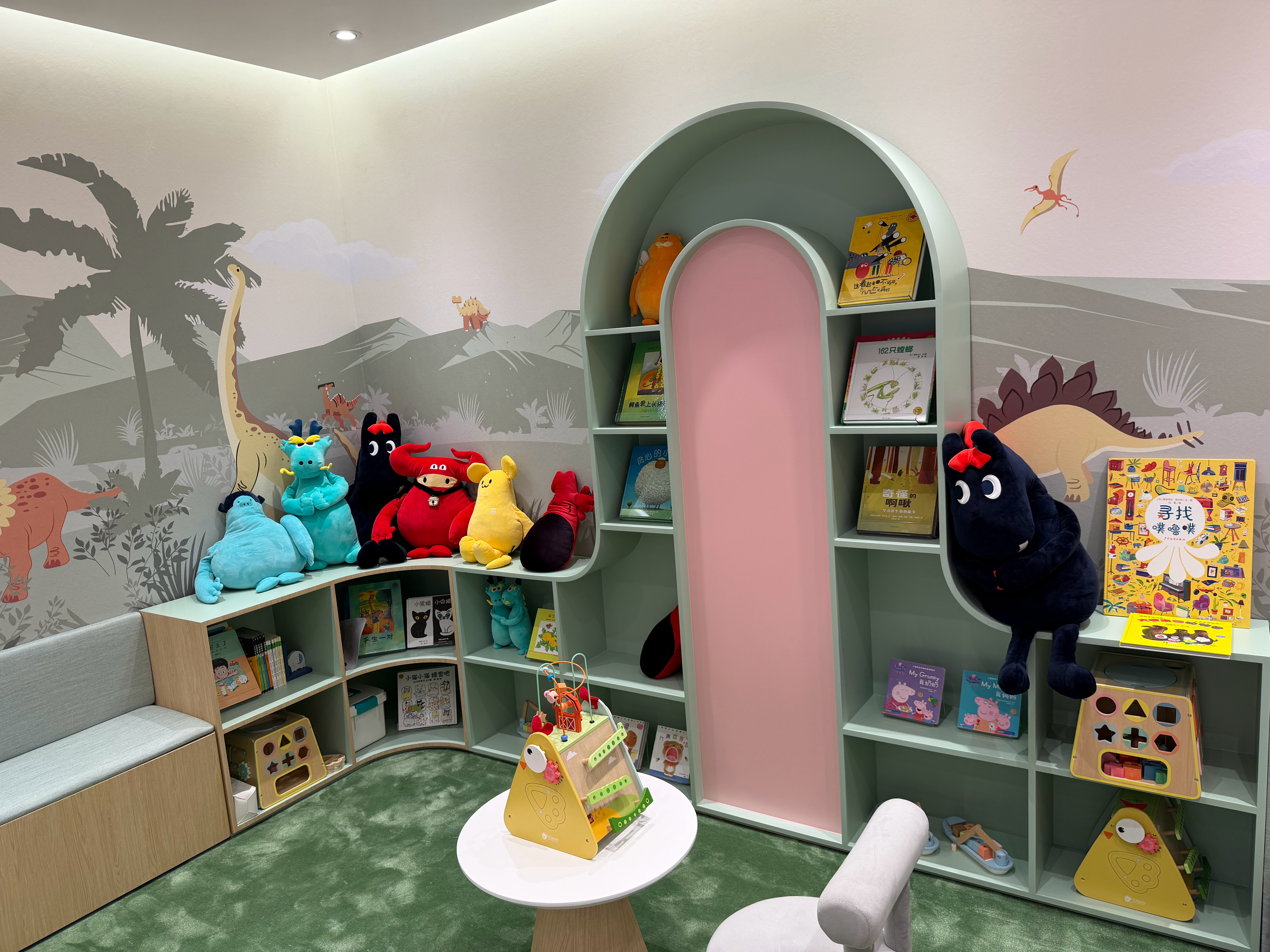 这次北京车展蔚来展台的用户休息室也太宽裕了,是一眼看不到头的那种,关键我还看到了各地蔚来中心(牛屋)的标配——儿童游乐区也搬来了,我都忍不住过去拍了个照