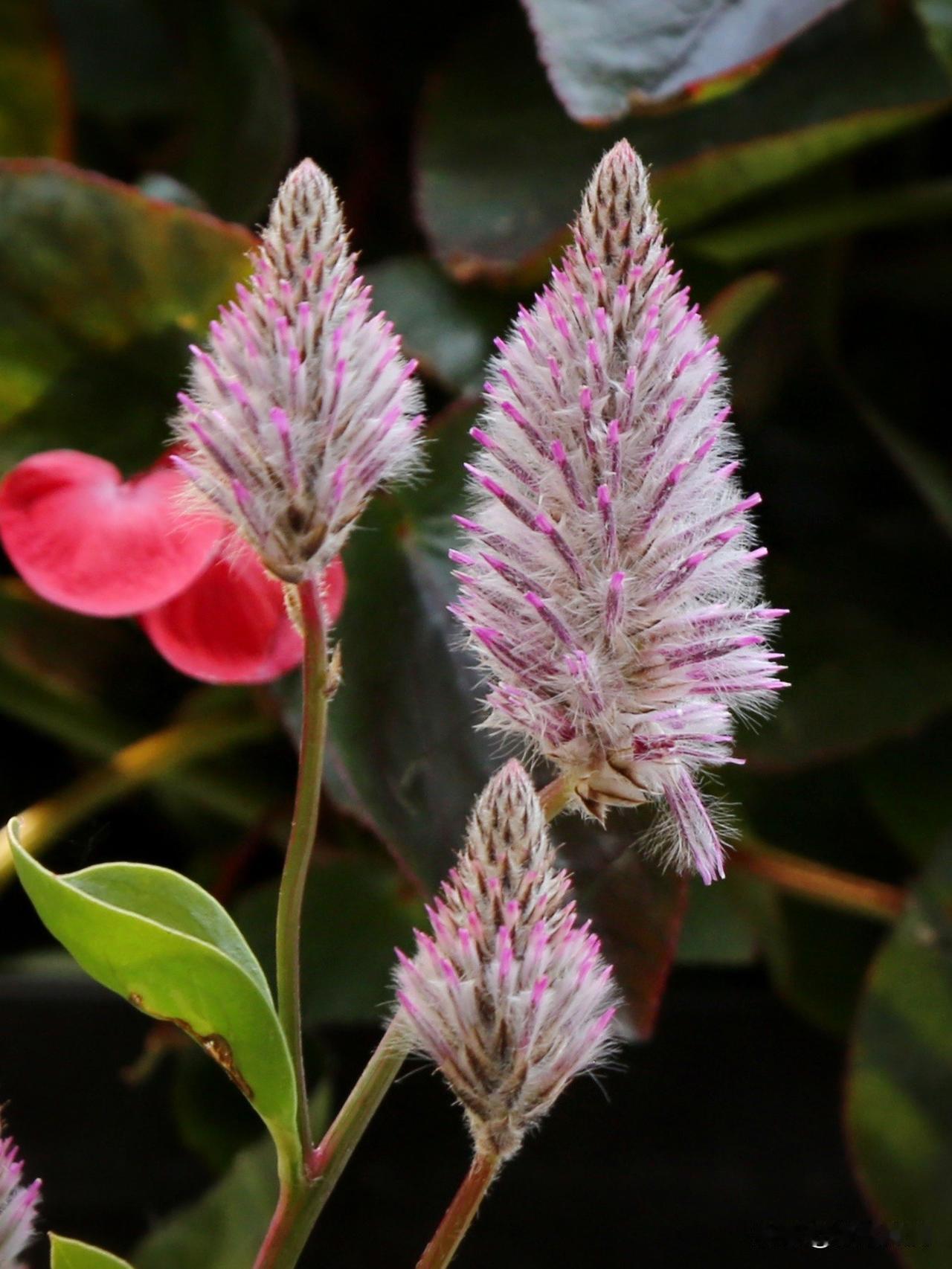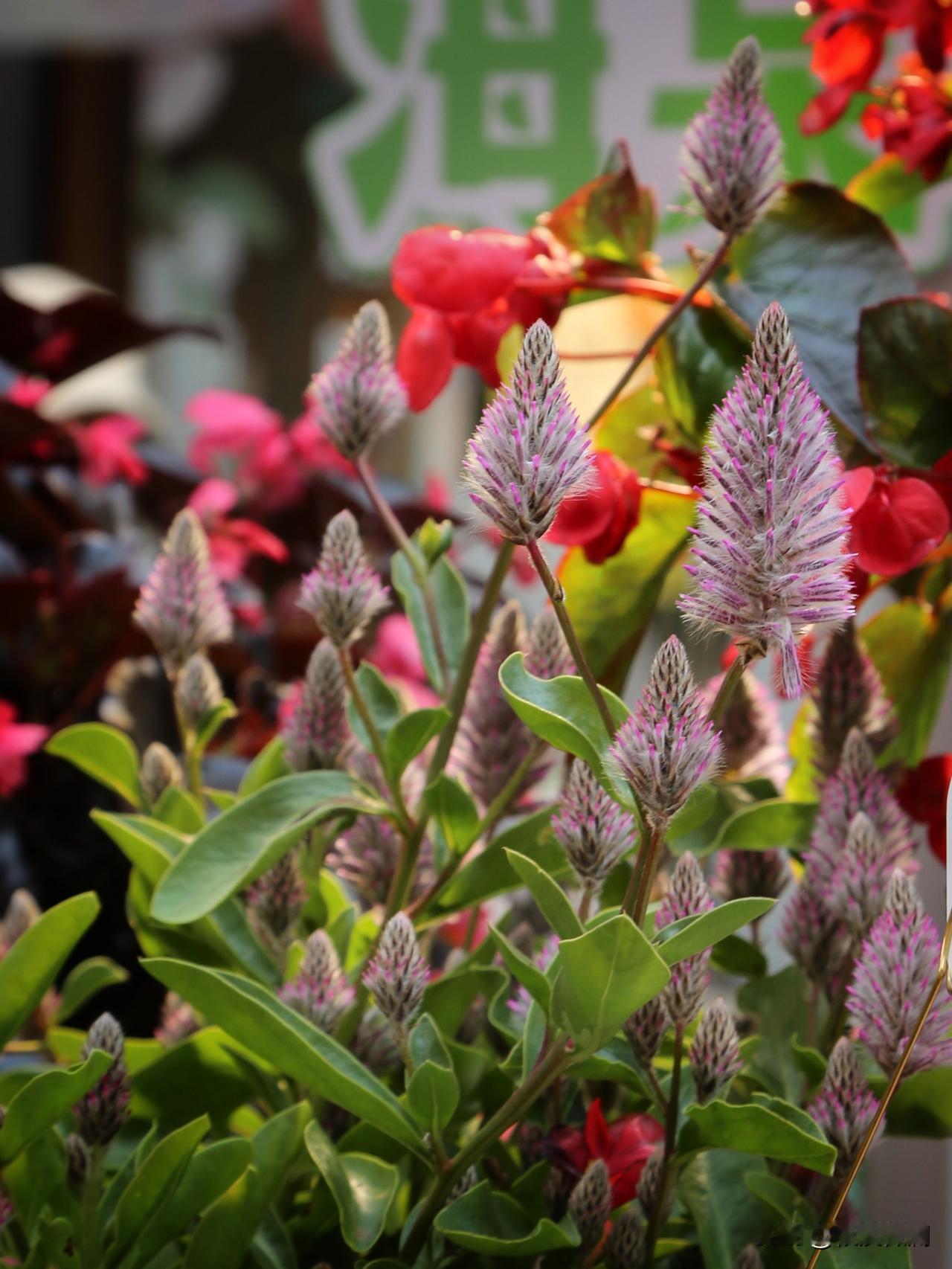 澳洲狐尾是一种非常可爱的,可以养在南面向阳阳台的盆栽植物。它的叶片具有肥厚的肉质感,类似于长寿花的叶片。最有特色就是它的花朵,直立的毛茸茸的,像小狐狸的尾巴,因原产地在澳大利亚的干旱地区而取名澳洲狐尾。花朵颜色为淡粉色夹带着粉紫色的条纹,近看特别可爱,手感也不错,没事可以去rua一把,很解压的感觉,仿佛养了一盆毛茸茸的小宠物。这也是在新天地东台花市里见到的新品种。