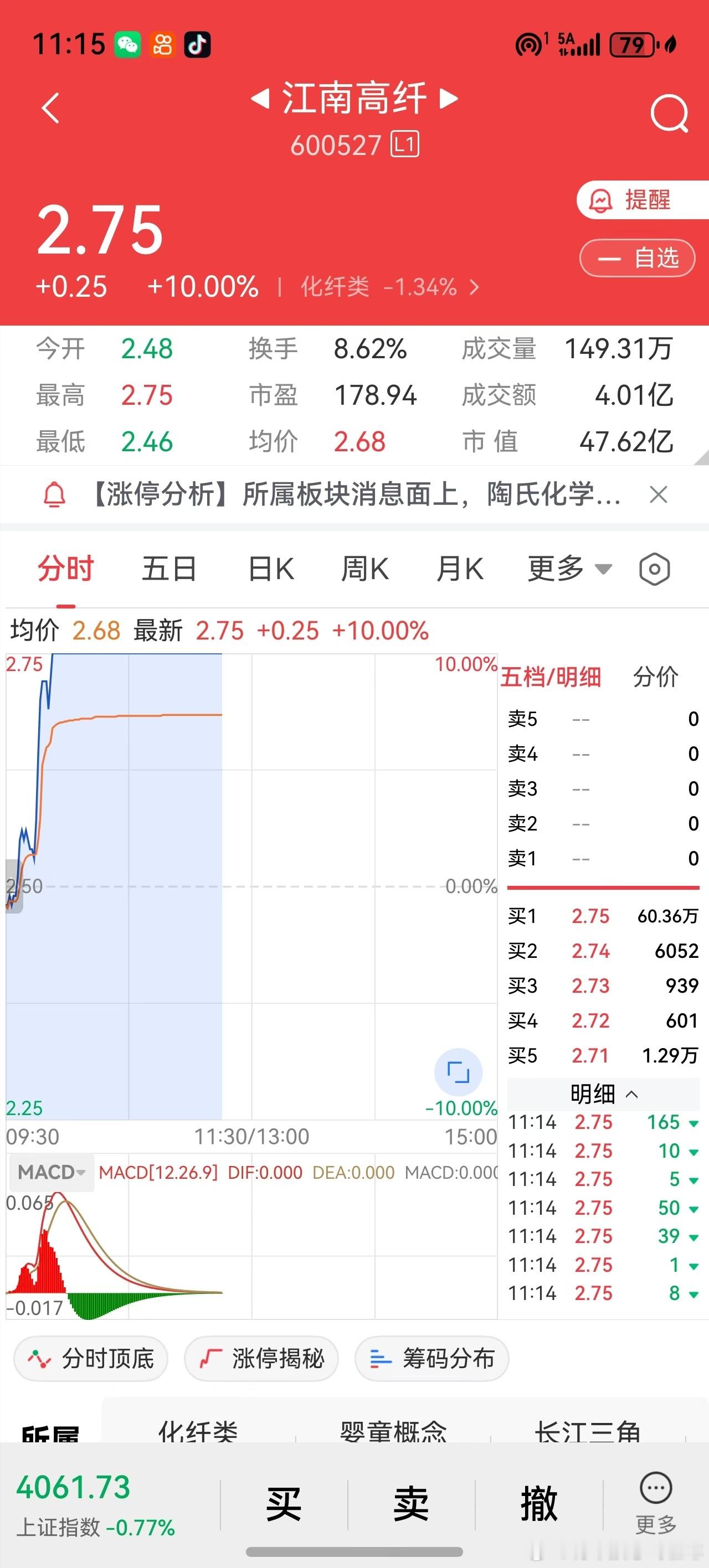 G2元首会见后又通话,美联储要换主席,降息将更容易,美以对伊朗动手打过一个月,大盘下4000点,美以和伊朗停战两周谈判最后时间第二次要谈,A股回暖,大盘上4000点,手中握有黄金票。近日购的化纤类股江南高纤,2026年3月12日开盘两分钟涨停,卖掉,周一2026年3月23日变绿深时吃进,2026年3月24日下午开盘后涨停,没卖,2026年3月25日上午涨停,卖出,再逢绿时最低点买入,2026年4月7日开盘16分钟涨停,卖出,深绿时再买入,2026年4月13日上午涨停,卖掉,近日深绿时再买进,2026年4月24日上午涨停,看情况卖出或继续持有。