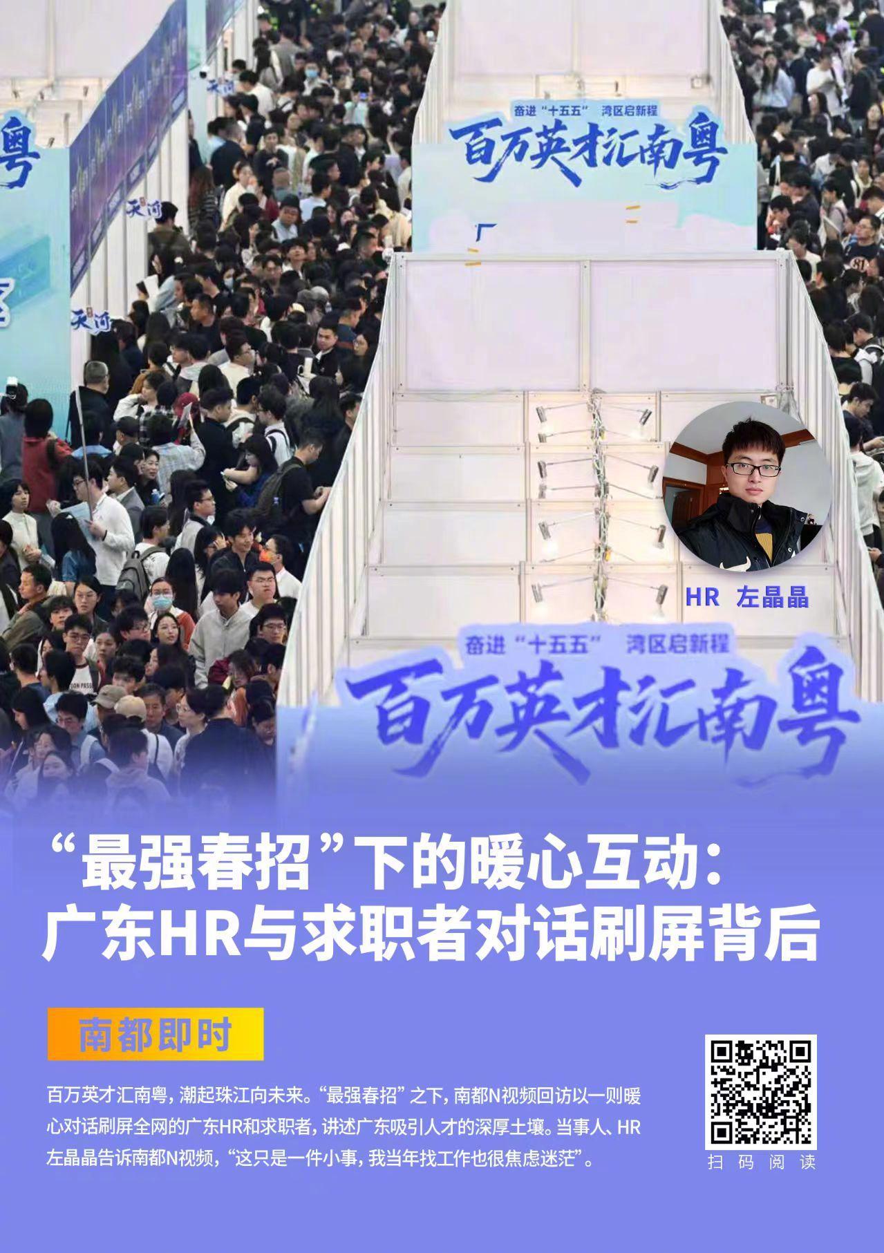 在广东,这样的“天使HR”不止一位。就在上个月,南都N视频记者曾独家报道,佛山一名求职者屡屡碰壁,获HR暖心安慰,两人的聊天记录刷屏全网。报道获人民日报等上百家媒体、机构转载。广东再现暖心HR:一则全网“捞人”面试帖背后的揽才诚意 广东再现暖心HR:一则全网“捞人”面试帖背后的揽才诚意