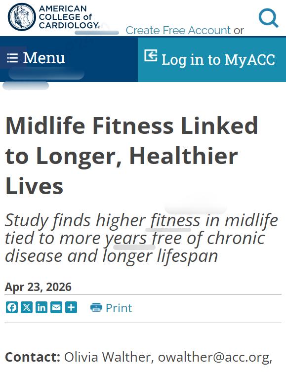 外媒:根据《美国心脏病学会杂志》(JACC)最新发布的一项大规模研究显示,中年时期的心肺耐力与健康老龄化之间存在着强有力的关联。这项涵盖了超过2.45万名受试者的研究,通过长达数年的追踪发现,拥有较高心肺耐力的人群在进入老年后,患慢性病的风险更低,且整体健康寿命显著延长。 研究人员重点考察了心脏与肺部在体育活动中供应氧气的能力,并追踪了包括心脏病、糖尿病、肾脏病和癌症在内的11种主要慢性疾病。数据显示,相较于身体机能较低的群体,中年时期体能优秀的人群平均晚发病至少1.5年。这种优势在不同性别、体重基数以及是否有吸烟史的人群中均表现一致,证明了体能对健康防御的普适性。 值得关注的是,这项研究提出了“健康跨度(Health span)”而非单纯“寿命(Lifespan)”的概念。这意味着,通过快走、骑行或其他有氧运动提升心肺功能,其核心价值在于让人们在更长的时间里保持健康状态,而非带病生存。 中年时期的体能投资是实现高质量老龄化的关键策略。即便只是适度增加日常活动量,也能有效推迟慢性病的到来,让生命在延长的同时,依然保有尊严与活力。