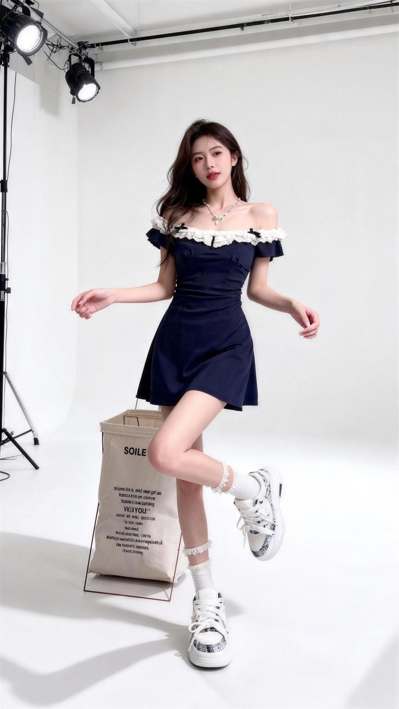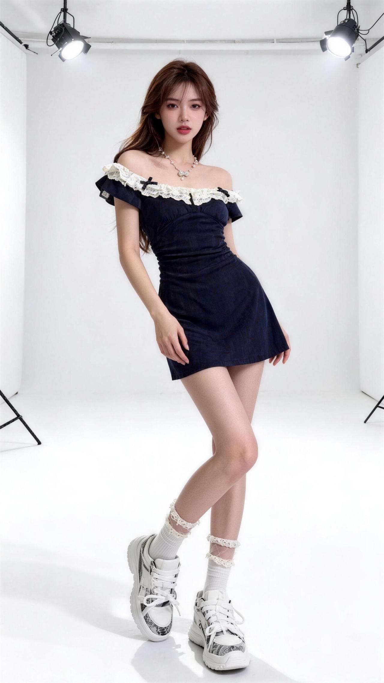 巨显瘦的连衣裙,可一字领露肩超美的甜妹穿搭分享 。ins风白裙 甜美辣妹蕾丝褶皱裙 吊带花苞一字肩摇拽半身裙套装