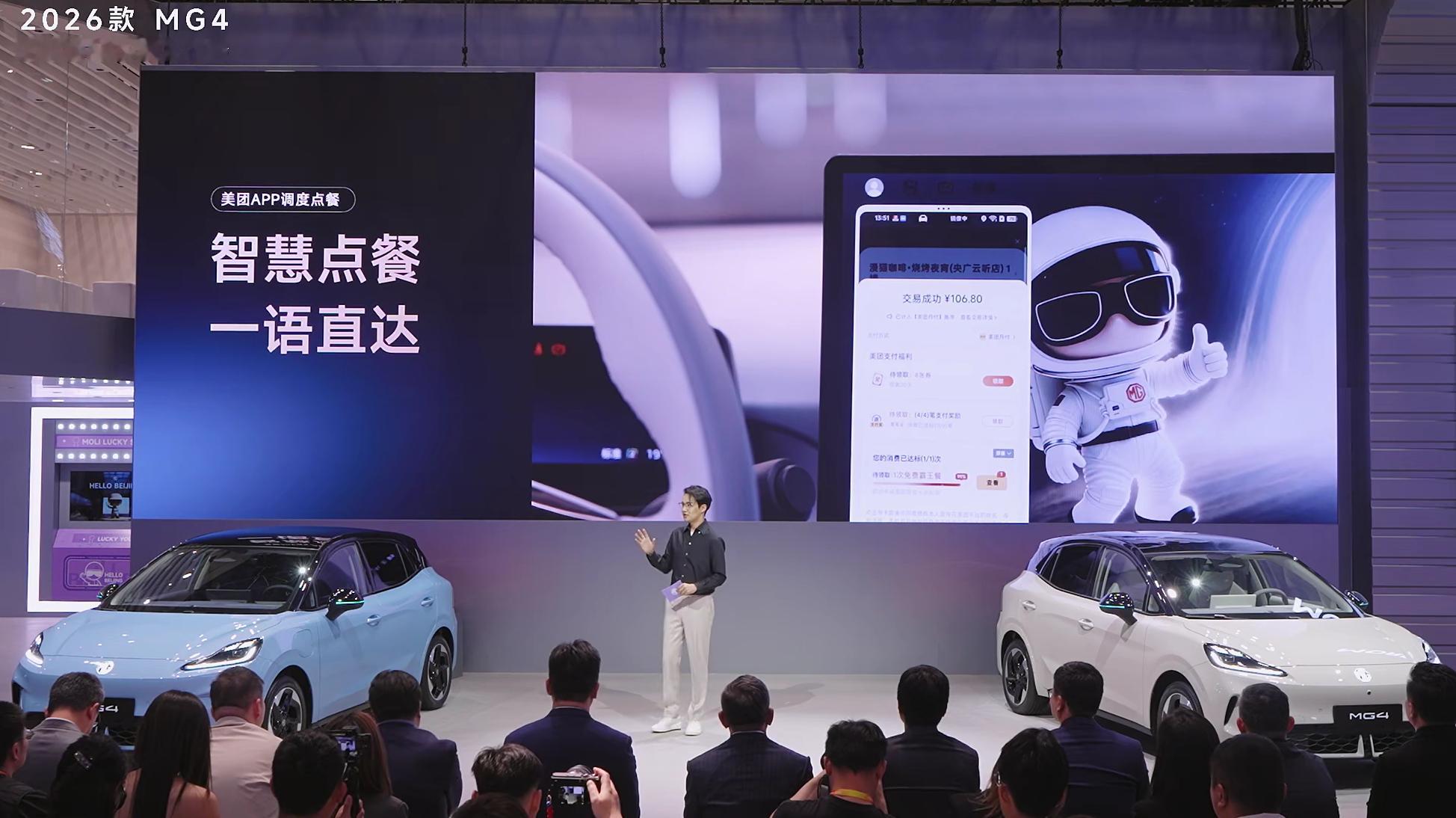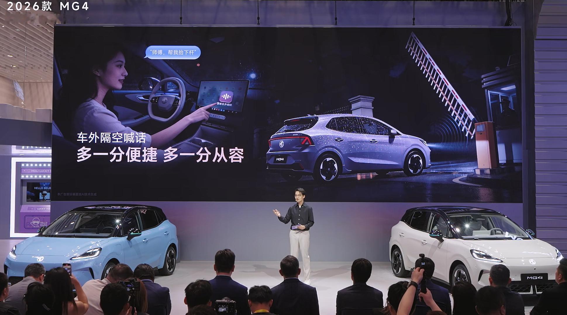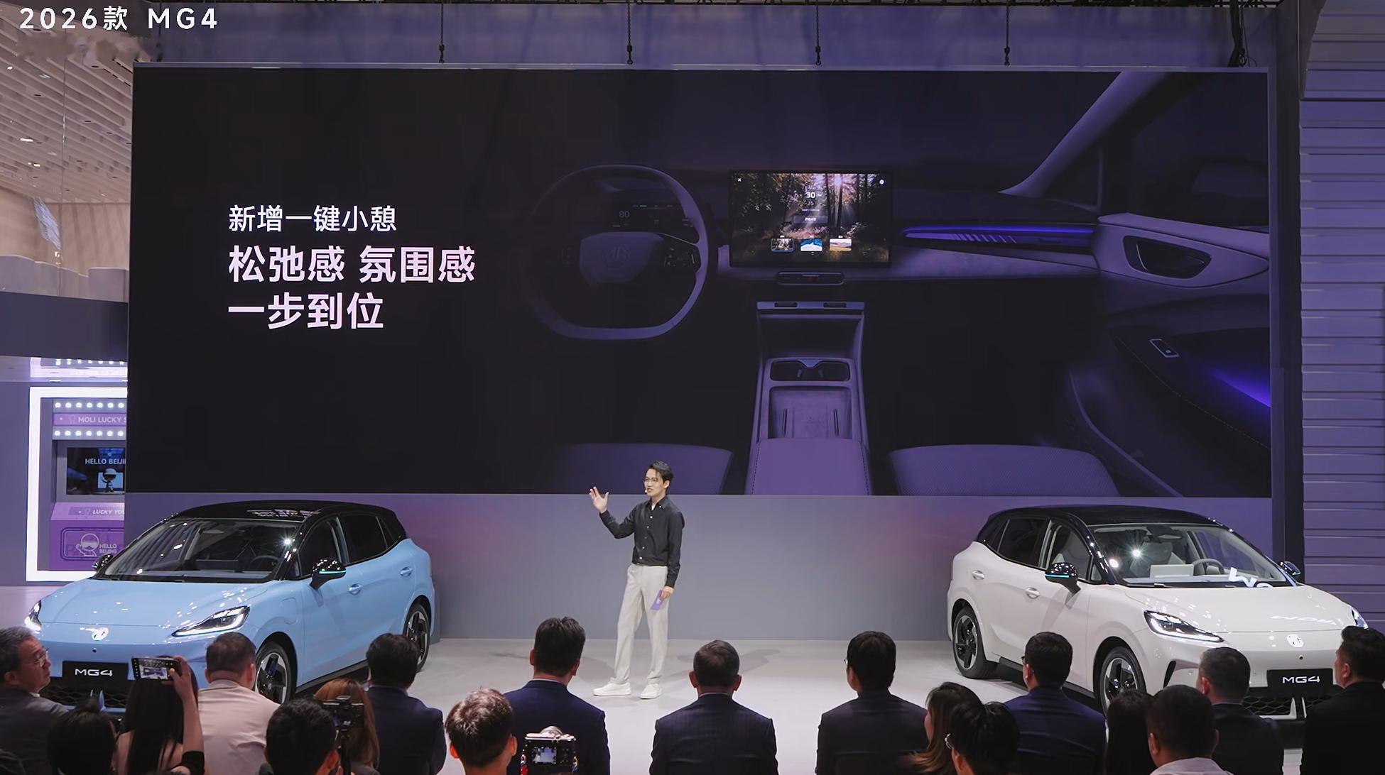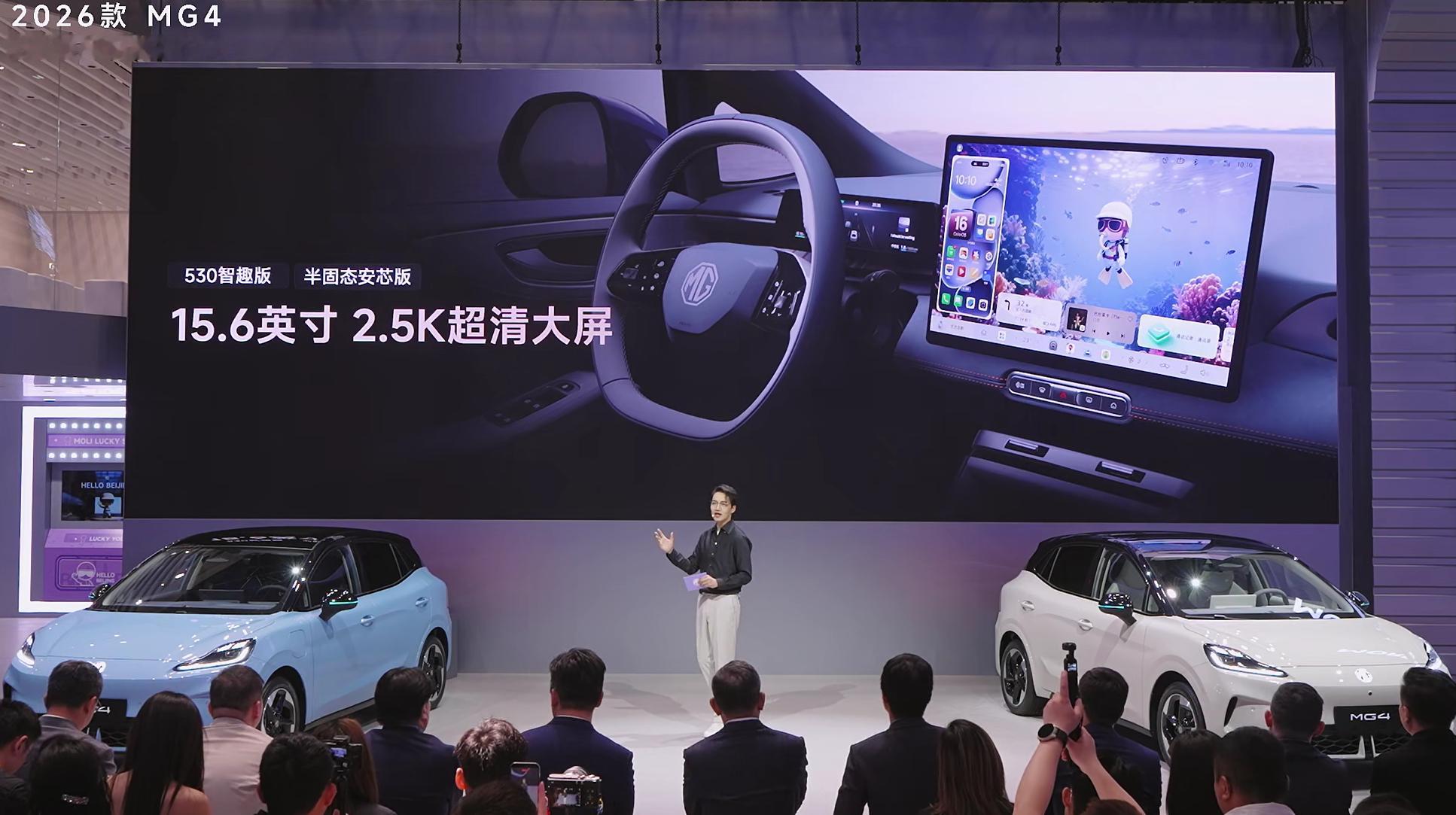 2026款MG4来了,这次满配座椅,支持座椅加热、座椅通风、8点按摩、电动调节和座椅记忆,新增一键小憩功能,顶配还有一块15.6英寸 2.5K超清大屏,还有新增的车外喊话功能,前车加塞的时候非常好用,直接可以喊话2026款MG4智驾数码团