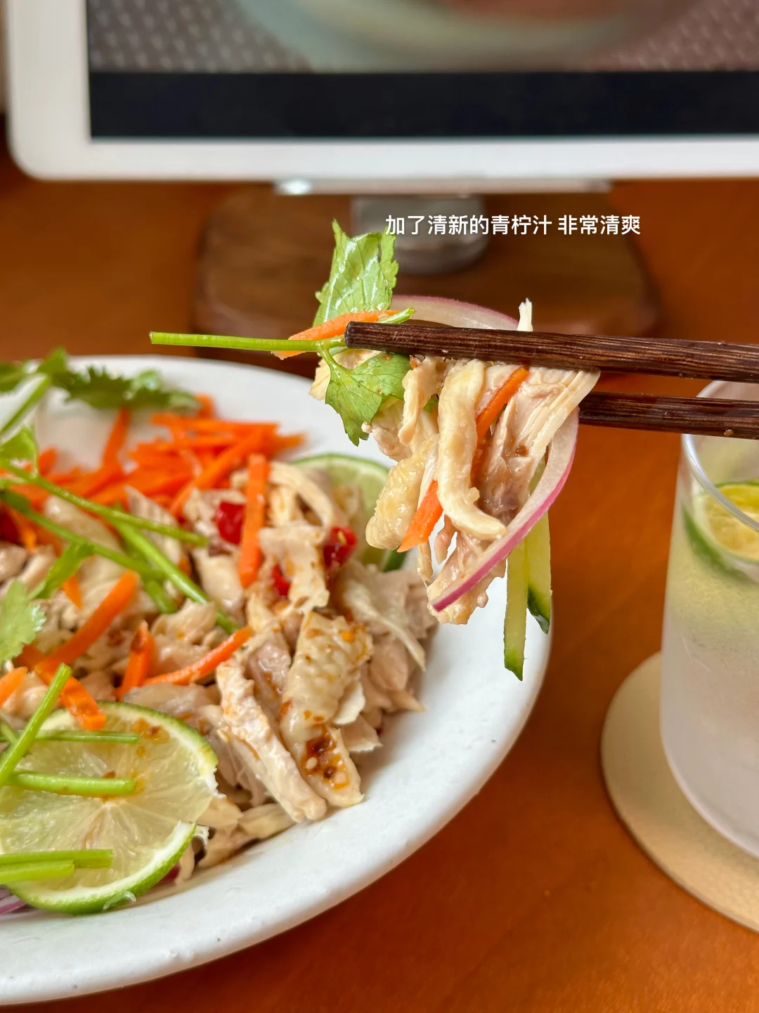 搭配了酸辣柠檬凉拌鸡丝 里面加了多多蔬菜