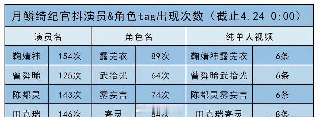 月鳞绮纪主演角色数据月鳞绮纪四位主演角色热度