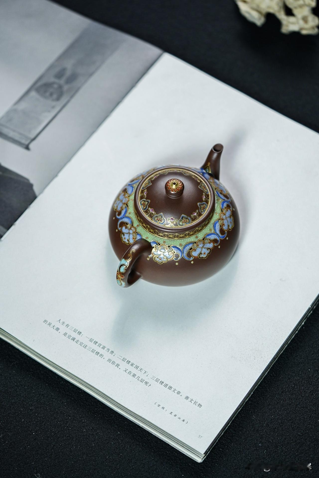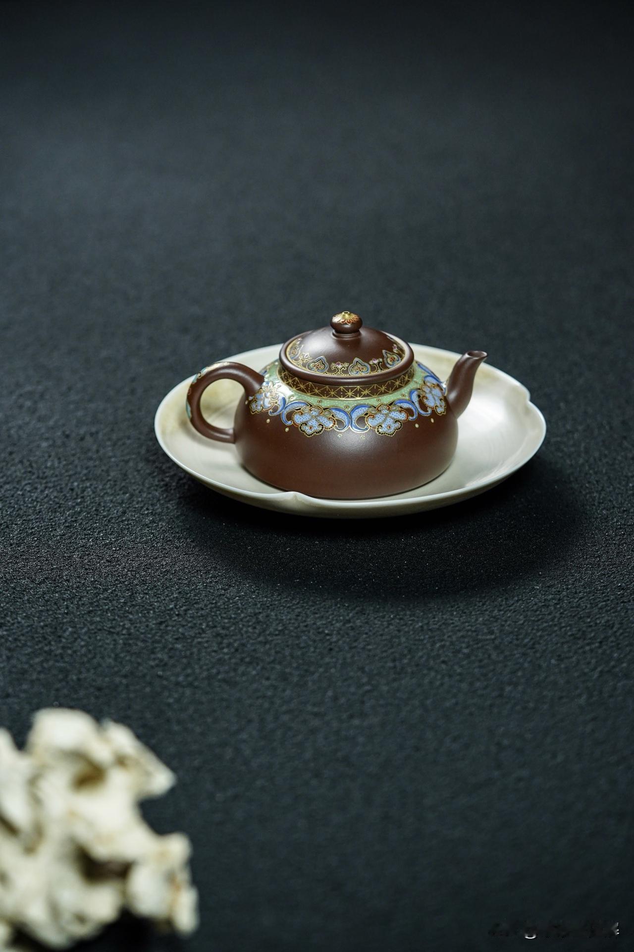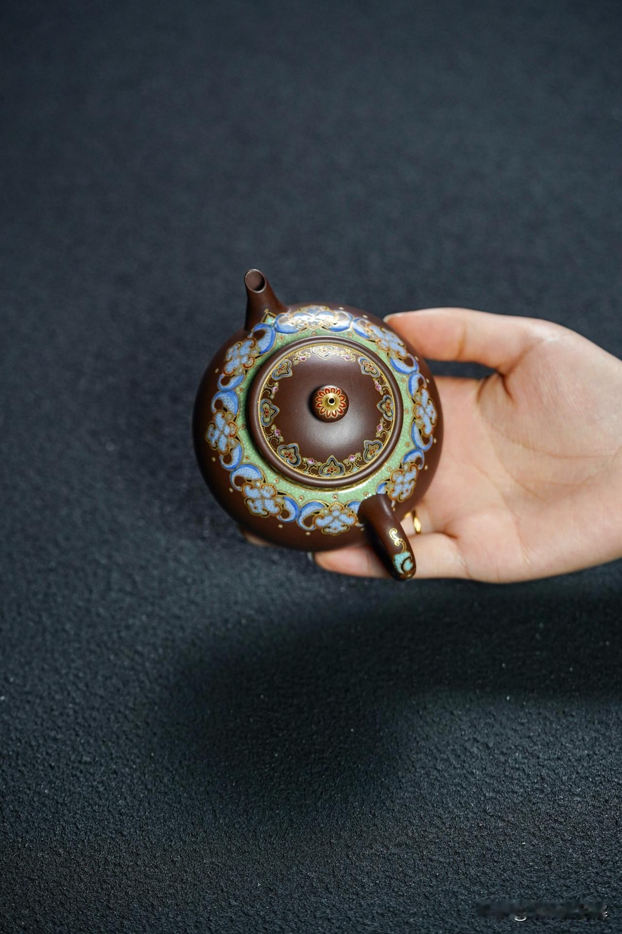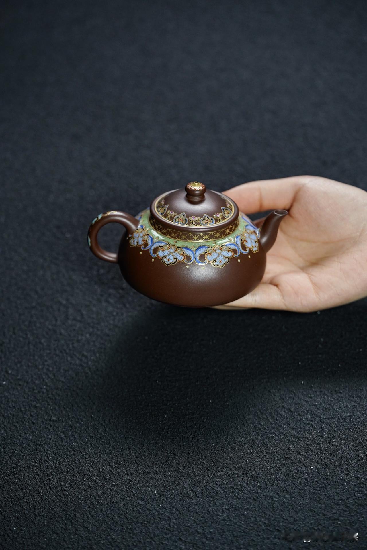 一把紫砂壶,其基础是实用,可以概括为“形为上,料为主,实用为先,收藏为附”。名家大师壶的名气再大,如果造出来的壶不能用于喝茶,侍茶又有什么价值? 紫砂原本就是实用工艺品,一把不实用的壶,也就丧失了最大的功能和价值。 把玩紫砂壶,首先应注重壶的实用性,从消费到收藏,是一个循序渐进的过程。在使用的过程中不断学习、研究、体会,了解紫砂壶的材质、做工、历史、文化渊源。 半月|精工珐琅丨160cc 原矿极品老紫料 慕古润泽 型体经典 可爱雅致 手工珐琅彩 高雅华贵 线条挺立饱满 堪堪一握 把玩出彩