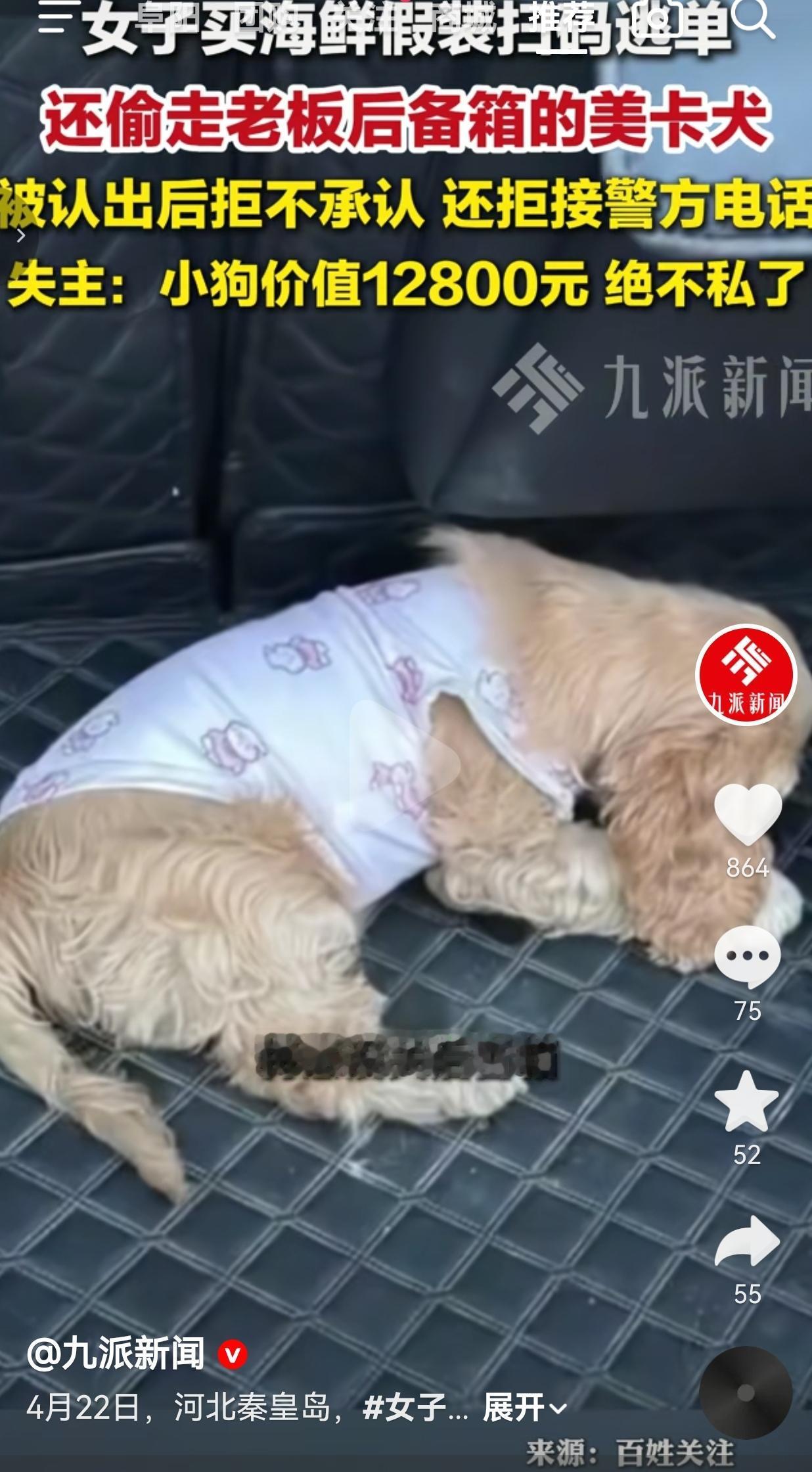 买海鲜逃单就算了,还顺手偷走老板价值一万多的小狗?这操作我是真开眼了 河北秦皇岛的海鲜店老板万先生声称,开着车来市场出摊,因为怕两个月大的美卡犬闷着,特意没关后备箱。 结果一个穿红上衣白裤子的女人过来买海鲜,假装扫码付款,转头不仅没给钱,还趁老板不备,直接把后备箱里那只价值12800元的小狗抱走了。 这波操作,简直是刷新了我对“缺德”两个字的认知下限。 她以为自己做得天衣无缝,结果后来被快递站的工作人员认出来,联系上了失主。 可这女的呢?被找上门了还死不承认,警方打电话她直接拒接,那态度嚣张得不行,跟自己没干过这事一样。 万先生说,这只小狗他花了一万多买的,就算对方现在把狗还回来,他也绝不私了,必须走法律程序。 网友看到后评论说:“我真服了,逃单也就算了,连小狗都偷?这三观是彻底歪了吧?” 也有的网友说:“一万多的狗,这金额会不会已经涉及刑事案件了?这种行为必须严肃处理,不然以后还会有人效仿!” 还有的网友说:“这女的是占便宜占上头了?逃单那点海鲜才几个钱,为了这点小便宜把自己的名声搭进去,值吗?” 更有网友表示:“老板没关后备箱是心软怕狗闷着,她倒好,直接把这份好心当成自己犯错的机会,底线都没了!” 说真的,我就纳闷了,这年头怎么还有这种只顾占便宜、不顾底线的人? 你说你没钱买海鲜,跟老板好好说,人家说不定看你困难还能送你一点。可她倒好,先逃单,再偷狗,两件错事干得理直气壮,被找来了还死不认账,拒接警方电话,这心态也是没谁了。 更让我生气的是,老板本来是出于善意,怕小狗闷着才没关后备箱,结果这份善意被她当成了犯错的机会。这种行为,真的让人寒心。 她以为自己占了天大的便宜,可她没想过,一万多的小狗不是小数目,一旦走法律程序,后果可不是小事。 到时候留下不良记录,以后自己和家人都可能受影响,就为了这点小便宜,把自己的生活搭进去,这买卖怎么算都亏得离谱。 而且最让人揪心的是,她偷的还是一只两个月大的小狗,你说她偷回去是想好好养吗? 我看未必,搞不好就是想卖了换钱花,那小狗要是落到她手里,能有好日子过吗? 万先生说得对,这种行为根本不能惯着,私了只会让她觉得犯了错也没事,下次还敢更过分。必须走法律程序,让她知道,做错事是要付出代价的,逃单、偷狗,一样都跑不了。 其实这件事,最让人寒心的不是有人逃单,而是有人把别人的善意当成了突破底线的阶梯。 老板的好心,成了她下手的机会;老板的信任,成了她占便宜的底气。可她忘了,人在做天在看,不是所有便宜都能占,不是所有错事都能躲过去。 你以为自己逃了单、偷了狗,占了便宜,可你丢掉的,是做人最基本的底线和良心。 最后,我想说的是:别拿别人的善意,当你突破底线的资本。 对此,你怎么看?