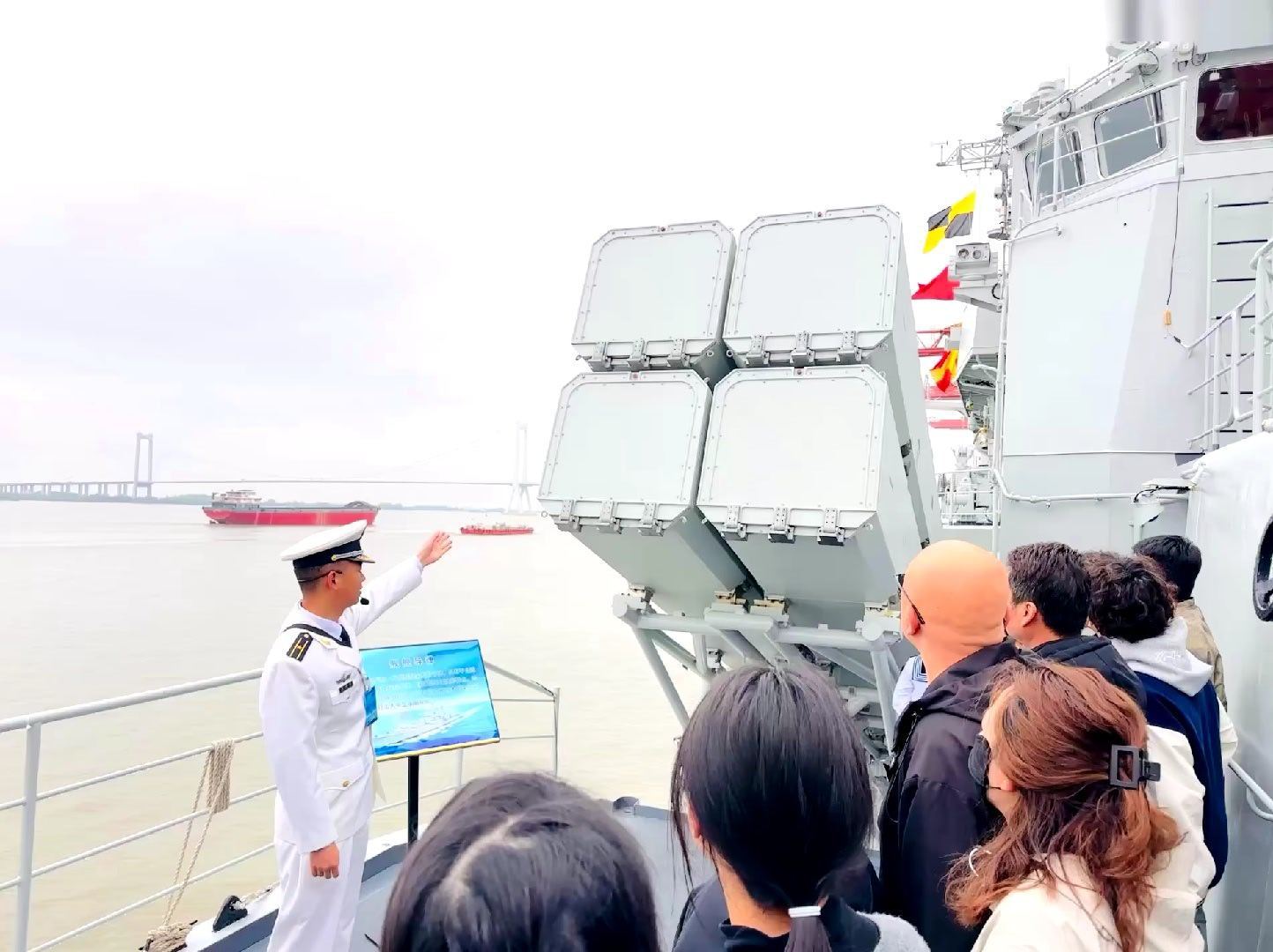 不过惊喜还不止如此,据不止一名上舰参观的网友表示,现场海军解说员声称,“泰州舰”上的反舰导弹发射架可以发射鹰击-15A反舰导弹。如果属实的话,那只能说厉害了。