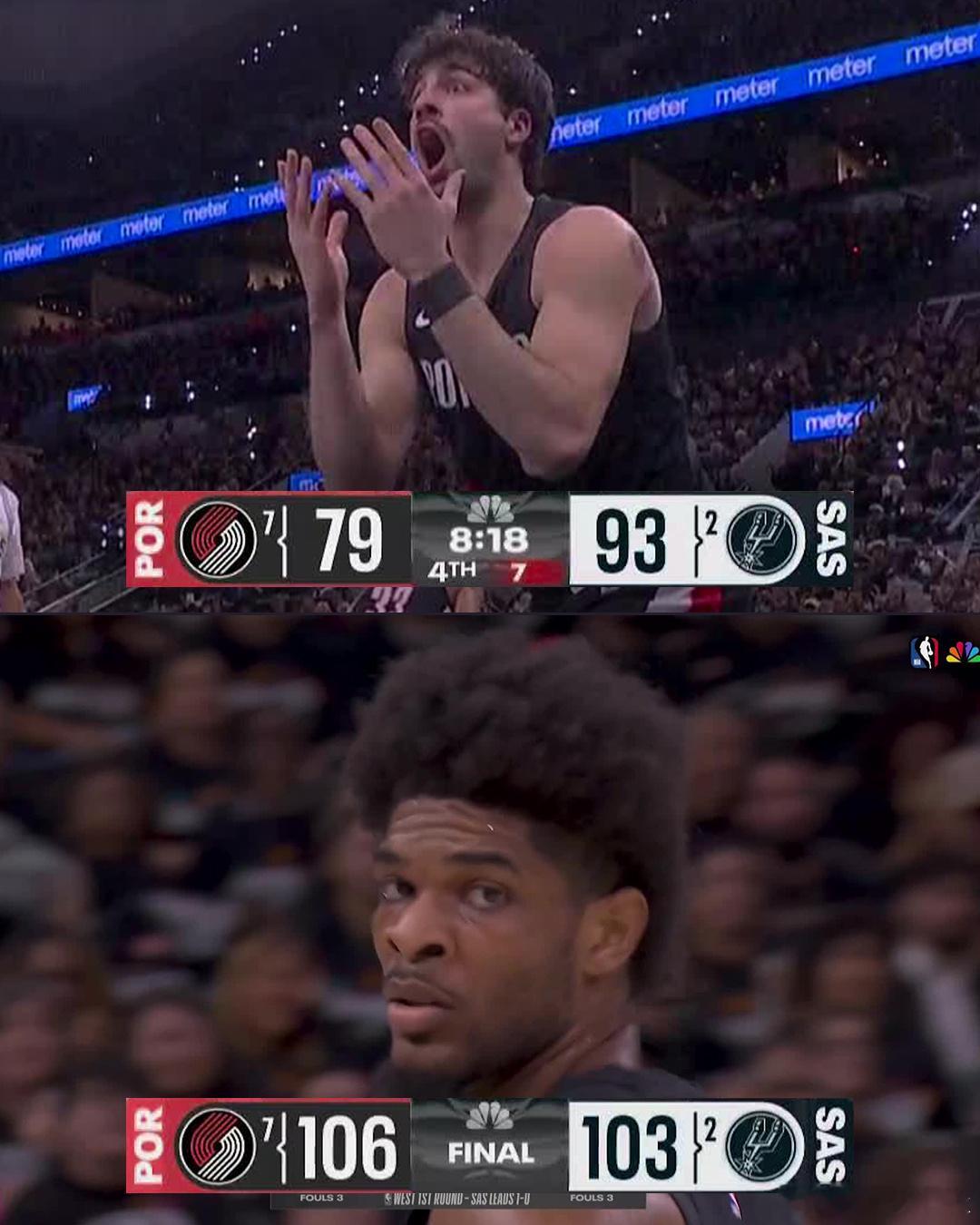 马刺 2025-2026赛季NBA 季后赛马刺G2主场遭遇开拓者逆转, 总比分1比1。巴恩斯和哈珀问题应该不大,文班亚马进入脑震荡程序。