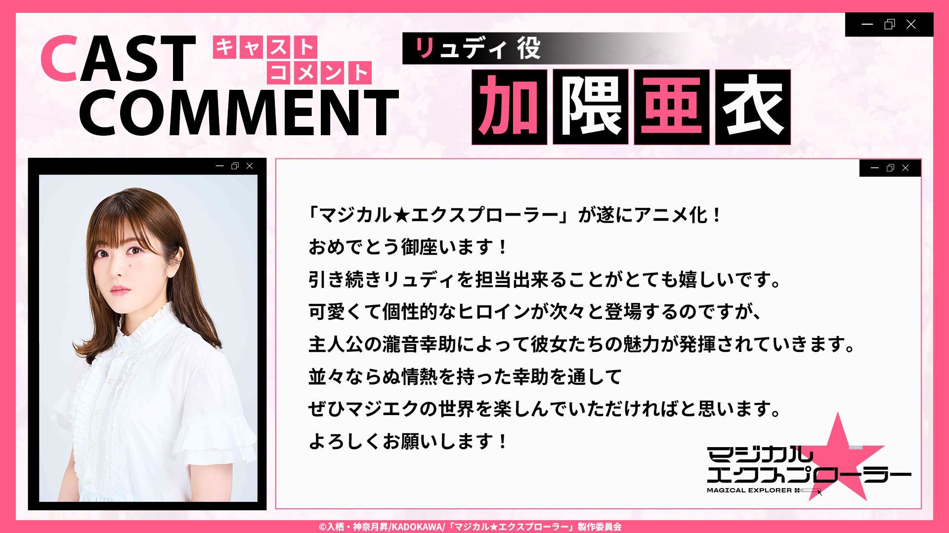 【壁姐姐的资讯箱】电视动画《魔法★探险家》公开第二弹先导视觉图,追加声优:加隈亜衣,该作将在秋季开播!