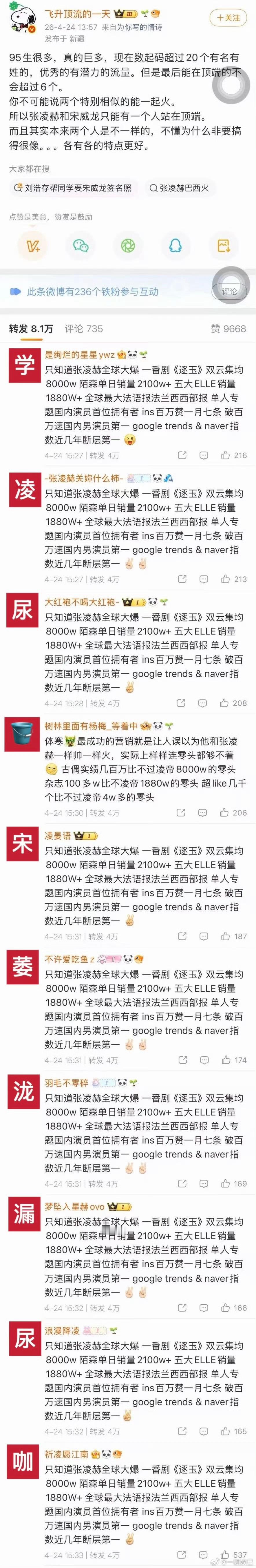 宋威龙对接发的维权博也都是张凌赫粉丝了……