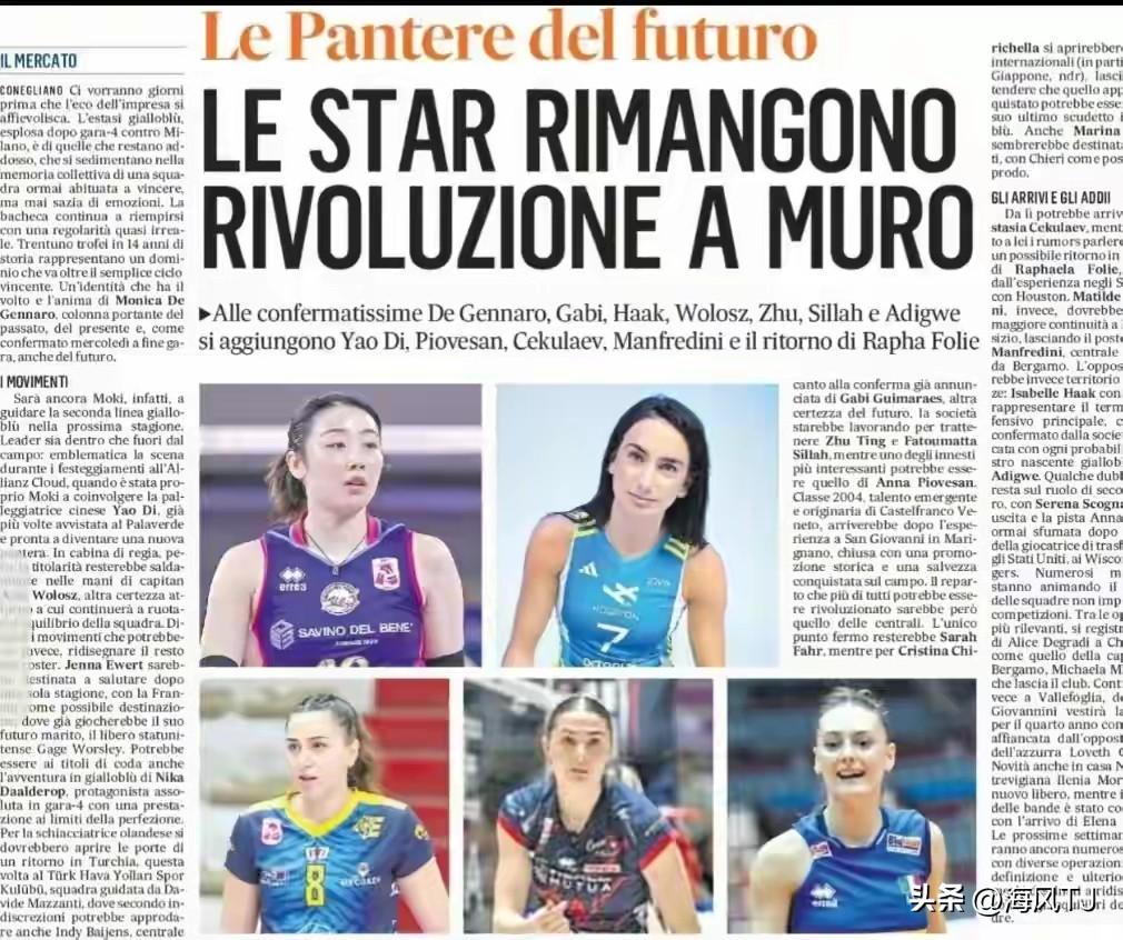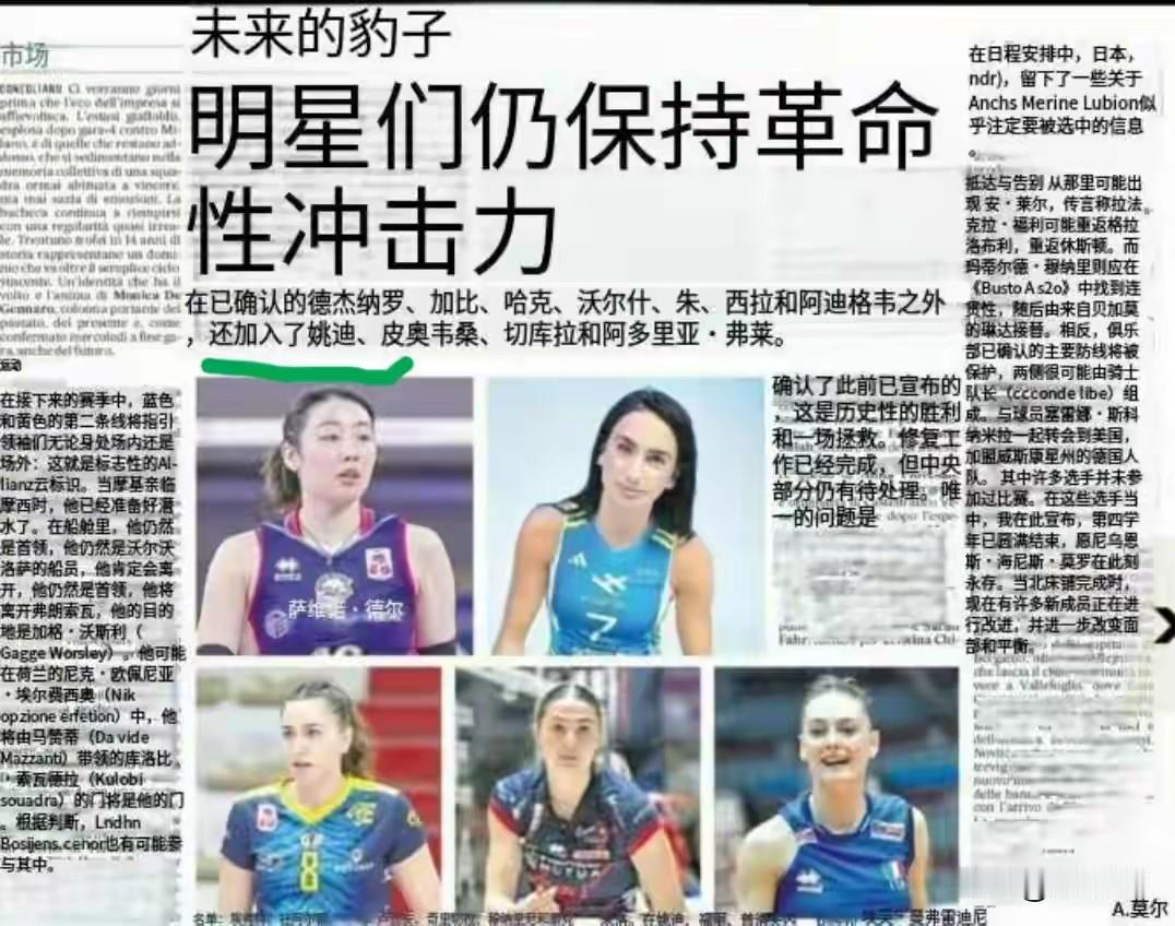 朱婷/姚迪国际赛场活跃打了谁的脸 朱婷不想多说了,她的竞技状态一直处在国际顶流队员之中。刚刚她随科内利亚诺又一次夺得了意大利联赛冠军。 令广大球迷兴奋的还有一事,那就是意大利官媒官宣姚迪下赛季加盟科内利亚诺女排。 姚迪在天津女排多次获得联赛冠军,全运会冠军,世俱杯第三,世俱杯亚军,在意大利斯坎迪奇作为主力二传夺得欧联杯冠军。 这两位🇨🇳女排队员如此的优秀却报国无门,被拒绝在中国女排国家队大门之外,这是为什么?她们被世界女排一流俱乐部认可这是打了谁的脸?