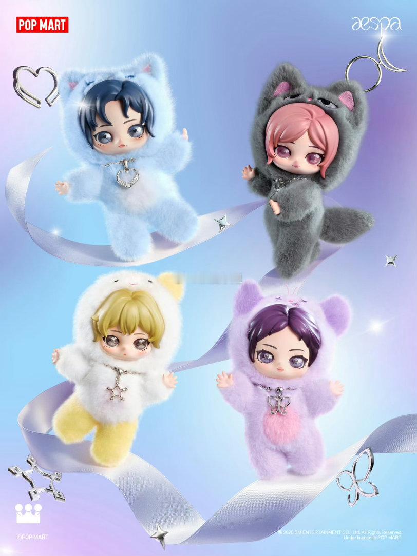 aespa×泡泡玛特来了🐱🐹🦌🐸萌化了,Q版脸型,软糯触感超好rua,随时陪在身边的绒绒萌友!可爱到犯规,日常治愈力拉满💖