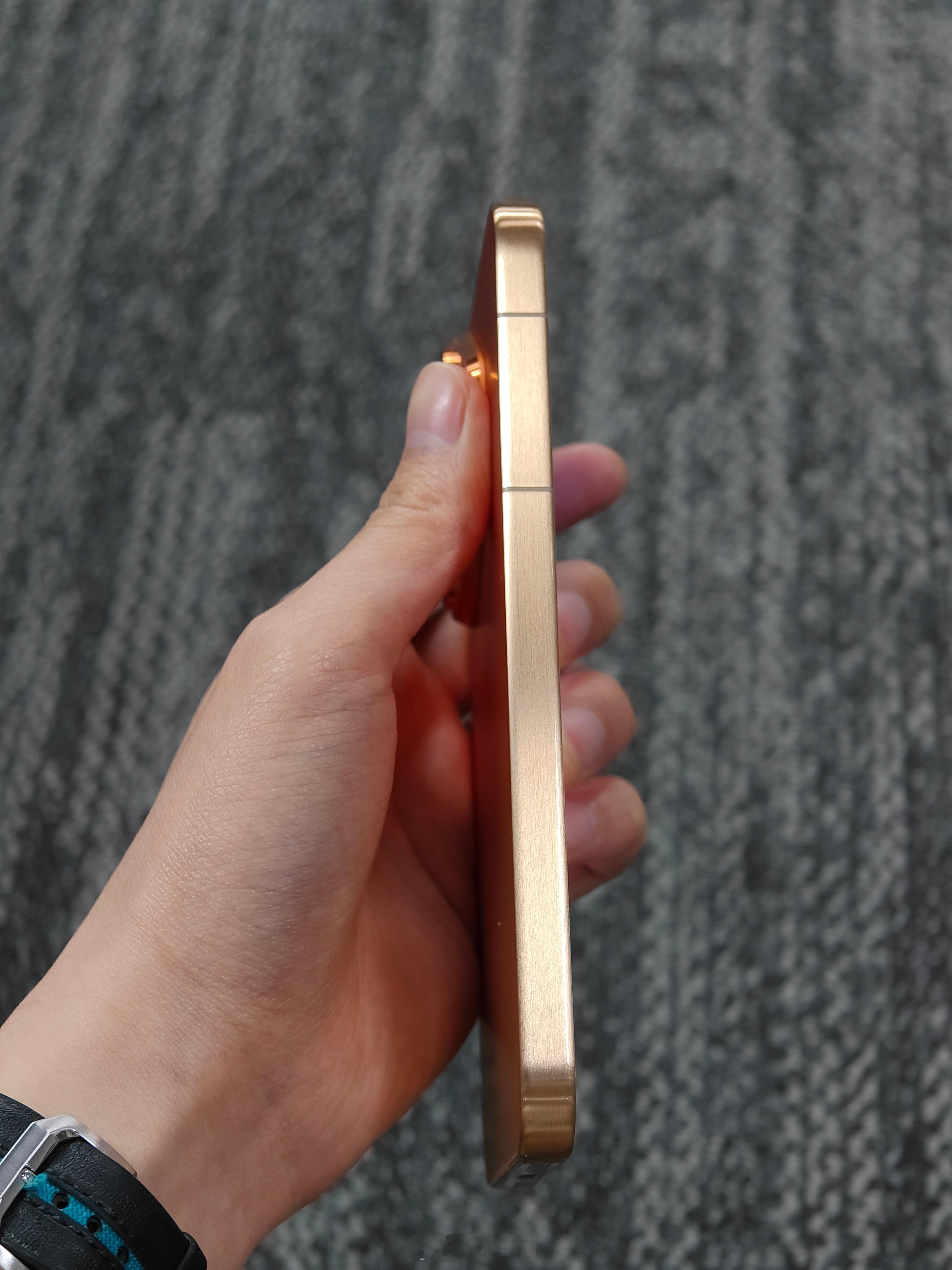 华为Pura 90 Pro橙色的边框,是现在比较少见的拉丝工艺,还做成了亮面的,好处就是,相比于纯亮面边框,指纹会没有这么明显