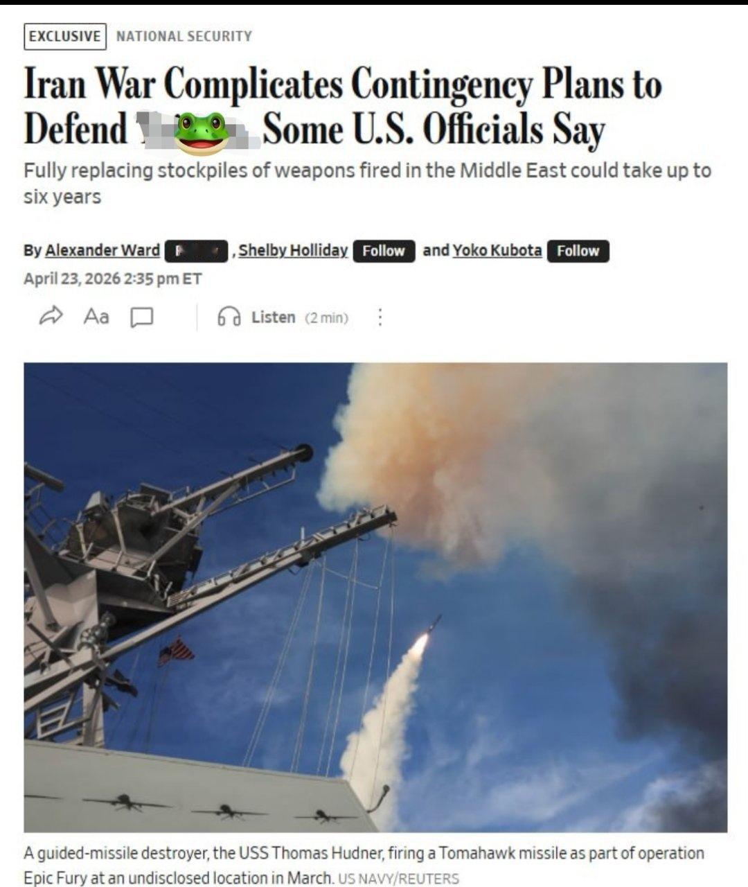 CNN:美国如果发生另一场战争,将面临导弹耗尽的风险。 在与伊朗的战争中,美国军方至少消耗了45%的精确打击导弹(PrSM)库存。 至少使用了50%的萨德(THAAD)导弹库存,这些导弹用于拦截弹道导弹。 近50%的爱国者防空拦截导弹库存已被消耗。 大约30%的战斧巡航导弹库存已被使用。 超过20%的远程空对地导弹(JASSM)库存已被使用。 大约20%的SM-3和SM-6导弹也已发射。 专家告诉CNN,即使提高生产能力,填满这些消耗也需要3到5年时间。 2024年6月10日,美国印太司令部司令塞缪尔·帕帕罗海军上将说:“我们的想法是,一旦东大的舰队开始穿越这条100英里长的水道,美军就会部署数千艘无人潜艇、无人水面舰艇和空中无人机,涌入该地区,给🐸、美国和合作伙伴的部队以时间做出全面反应,让他们知道什么叫做地狱水道。” 2年后美军打伊朗打成了这个样子,以后再讲什么“美军在西太的存在”都让人觉得好笑。 据美国《华尔街日报》报道,美国官员表示,伊朗战争已严重消耗了美国的弹药储备,这引发了人们对美国在不久的将来应对🐸海冲突的准备情况的担忧。自2月下旬以来,美国已使用了1000多枚“战斧”巡航导弹,以及包括“萨德”反导系统和“爱国者”防空系统的数千枚拦截弹,这使得在🐸海冲突中至关重要的资源变得紧张。一些官员现在担心,如此高强度的消耗可能会限制军方在短期内全面实施对抗东方某国的应急计划的能力。虽然补充弹药可能需要数年时间(最多6年),但五角大楼(美国国防部)坚称整体战备水平仍然足够。 据彭博社报道,美国空军计划在未来五年内从洛克希德·马丁公司采购近4300枚远程隐身巡航导弹,大幅扩充其导弹储备。美国空军计划在下一财年采购821枚导弹,到2028年年采购量将增至约900枚,此后每年稳定在860枚左右。 作为重建近年作战中消耗的导弹储备的一部分,美国空军的目标是到2031年将导弹总库存量增加至11000枚以上,高于2025年前采购的6700枚左右。 据美国《纽约时报》报道,美国在与伊朗的战争中消耗了大量弹药,严重削弱了其全球储备,并引发了对其他地区战备状态的担忧。 自2月下旬战争开始以来,美国军方已使用了约1,100枚远程隐身巡航导弹(JASSM-ER),每枚导弹价格约110万美元,专为对抗东大等高强度冲突而设计。目前仅剩约1,500枚。美国军方还发射了超过1,000枚战斧导弹——约为其年度采购量的十倍——以及1,200多枚“爱国者”防空导弹(每枚价格超过400万美元)和1,000多枚精确打击导弹和ATACMS导弹。在战争开始的头两天内,美国就消耗了价值约56亿美元的弹药,共打击了超过1.3万个目标,通常每个目标需要多枚弹药。 弹药消耗规模迫使美国国防部将武器、导弹和系统从欧洲和亚洲的司令部调往中东地区支援作战。这些调动削弱了其他地区的战备能力:在欧洲,北约东翼的关键储备和对抗俄罗斯的威慑力量已被消耗殆尽,而察打一体无人机的短缺和训练演习的减少使得作战能力受到了影响。 在亚洲,影响更为严重:包括“爱国者”防空导弹和“萨德”反导系统拦截弹在内的资产已从韩国等关键位置调走,削弱了对朝鲜日益增长的导弹威胁等地区威胁的防御能力。 与此同时,补给工作进展缓慢。尽管美国国防部已与洛克希德·马丁等国防承包商达成长期协议以增加生产——目标是将精确制导弹药和导弹拦截器的产量提高四倍——但由于国会资金审批延迟,实际扩产进程停滞不前。美国官员警告称,重建库存可能需要数年时间,一些军火库存“低得令人担忧”,引发了对美国同时应对多场高强度冲突能力的更广泛担忧。不过《纽约时报》的上述报道遭到了美国白宫新闻秘书卡罗琳·利维特的否认,并称:“这篇报道的整个前提都是虚假的。美国拥有世界上最强大的军队,国内外储备了充足的武器和弹药,足以有效保卫本土,并执行总司令下达的任何军事行动。” 据美国有线电视新闻网21日援引专家及知情人士消息报道,美军在对伊朗发动的军事行动中“消耗大量重要导弹库存”,若未来几年内再陷入战事,或将面临短期“弹药耗尽”的风险。美国战略与国际问题研究中心最新披露的分析报告显示,过去七周,美军在伊朗战事中消耗了至少45%的精确打击导弹库存,至少一半的“萨德”拦截弹库存,以及近50%的“爱国者”拦截弹库存。 消息人士透露,该数据与美国国防部评估数据高度吻合。报告指出,短期来看,美军可能尚有足够弹药继续对伊打击,但其关键弹药数量已明显不足,要想恢复至战前水平可能需要数年时间。