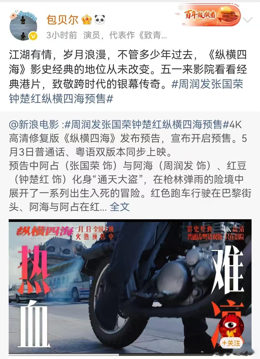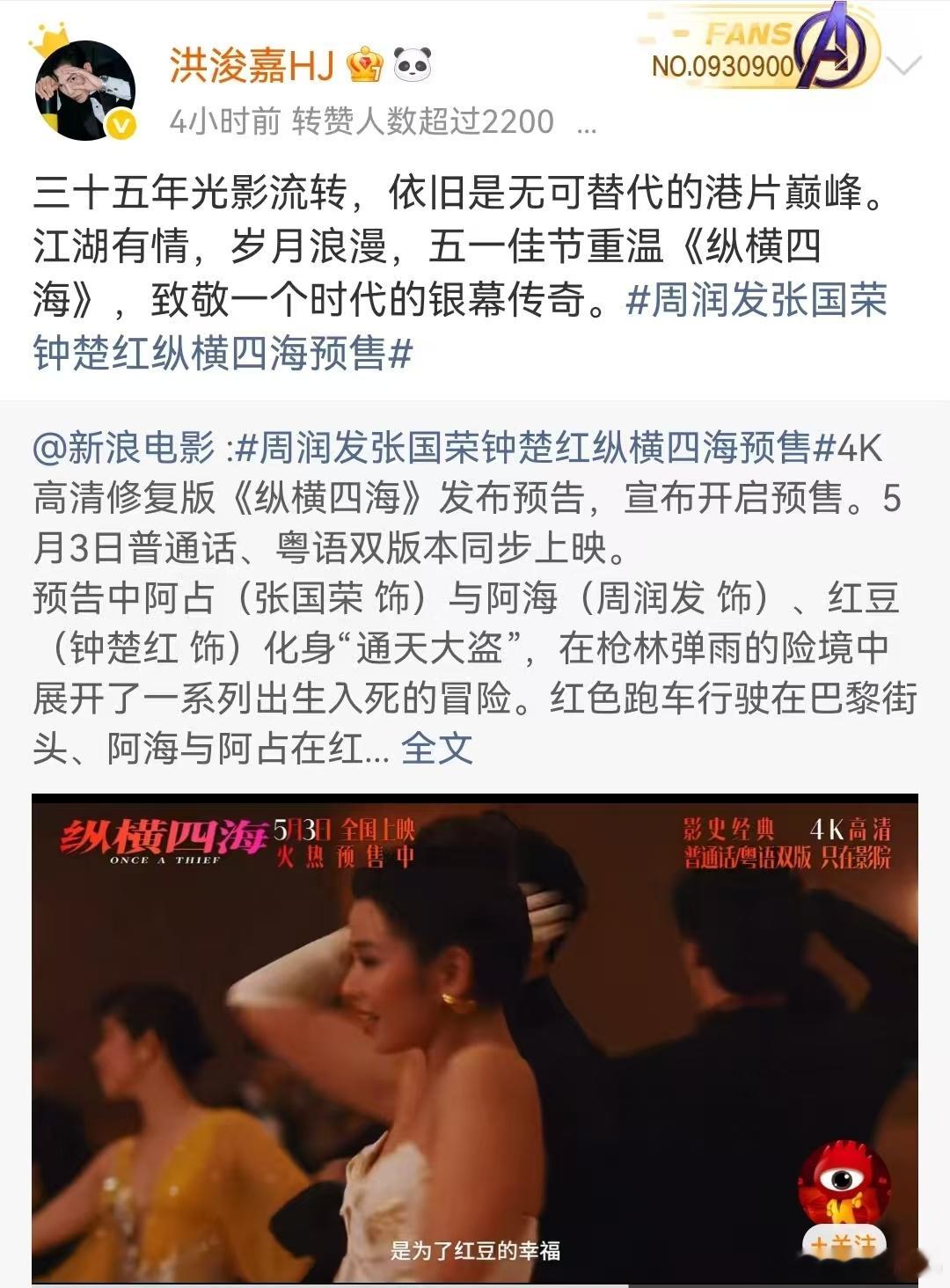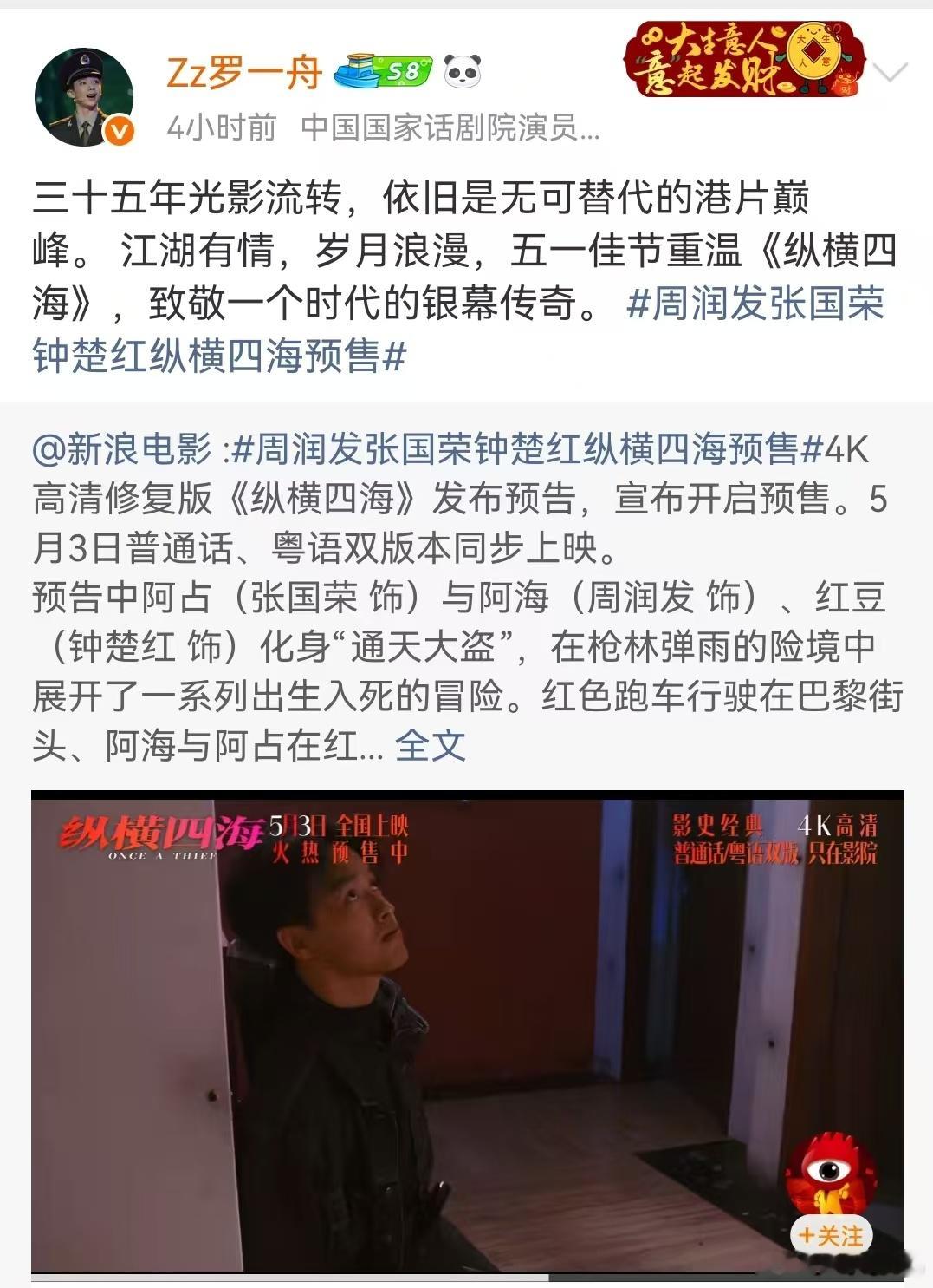 半个娱乐圈都在宣传纵横四海属实没想到,一部老电影重映能惊动半个娱乐圈。纵横四海时隔35年重映上线,黄渤、任贤齐、罗一舟等明星全员转发助阵。港风经典永不过时,有这么多人期待,一定要去影院好好重温。