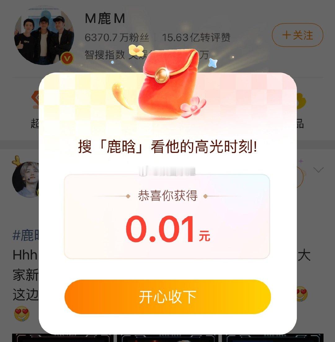 搜鹿晗果然有红包🧧你们领了多少!