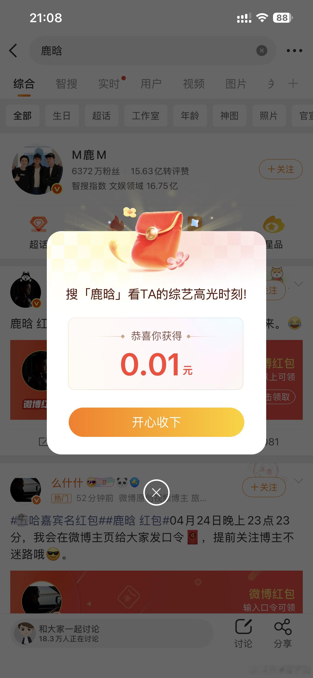 鹿晗红包一分钱