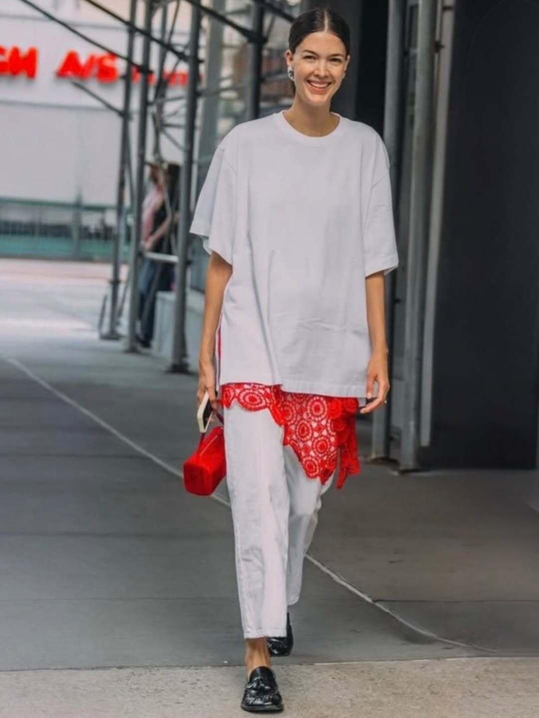 被这样的松弛感穿搭圈粉了! 用一抹亮眼的红点亮全身,打破沉闷的黑白大地色系,瞬间提升造型活力。 无论是白裙配红鞋的优雅,还是红背心搭灰裤的随性,或是红包点缀复古套装,都在简约廓形与利落剪裁中,平衡了松弛与精致,毫不费力就穿出时髦又耐看的高级感。