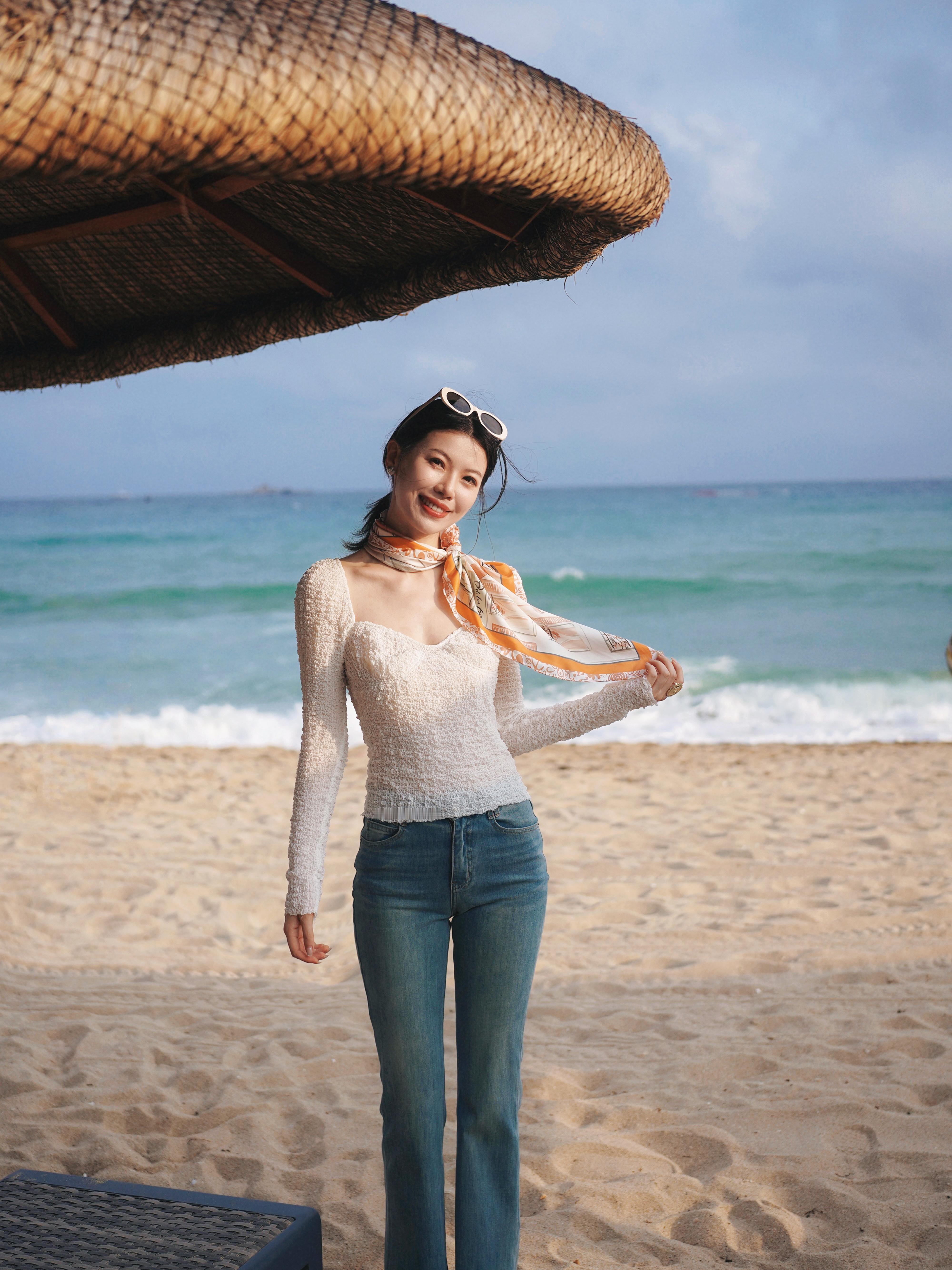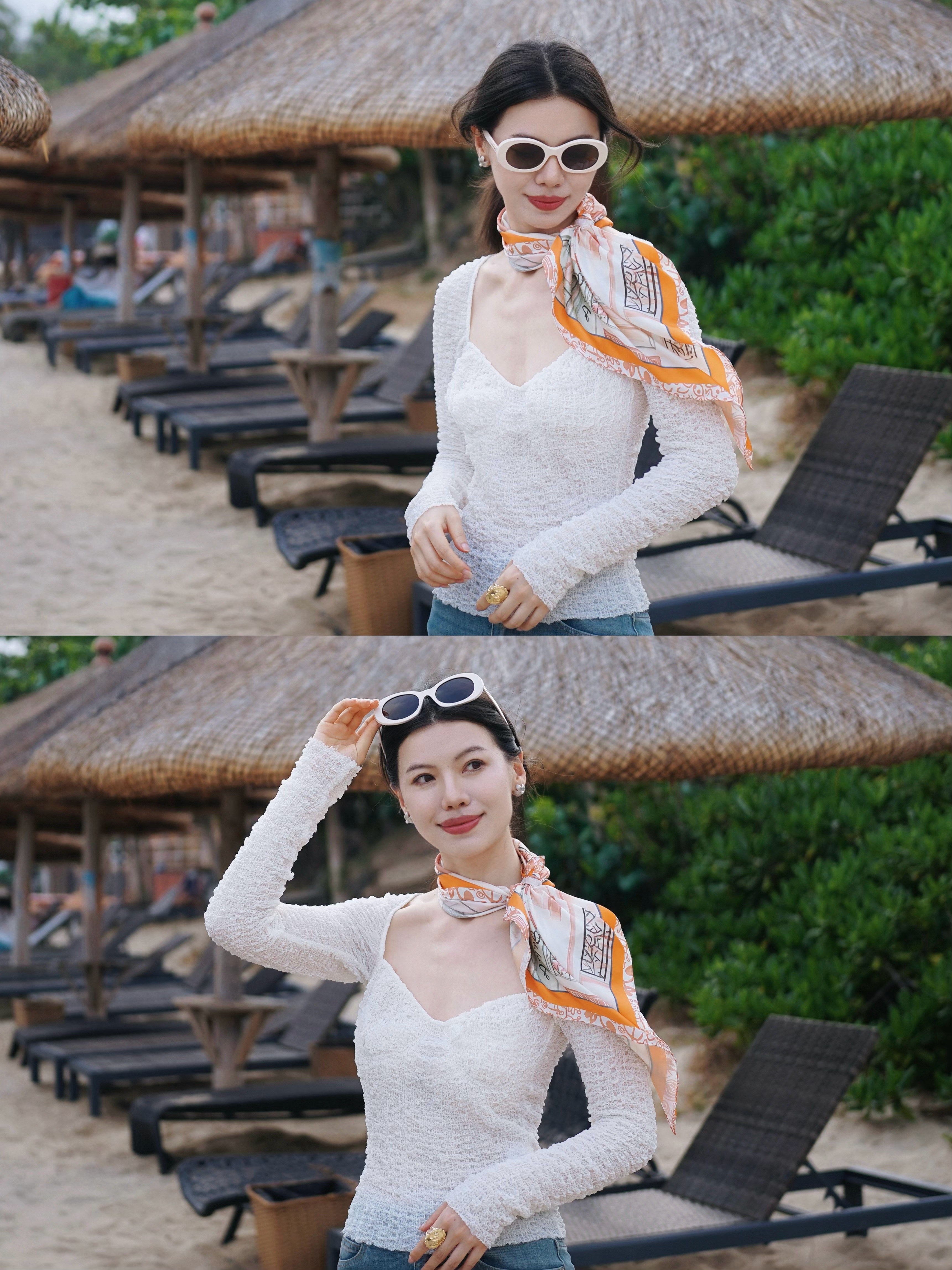 日常穿搭去海边🏝️记得带一条丝巾呀✨