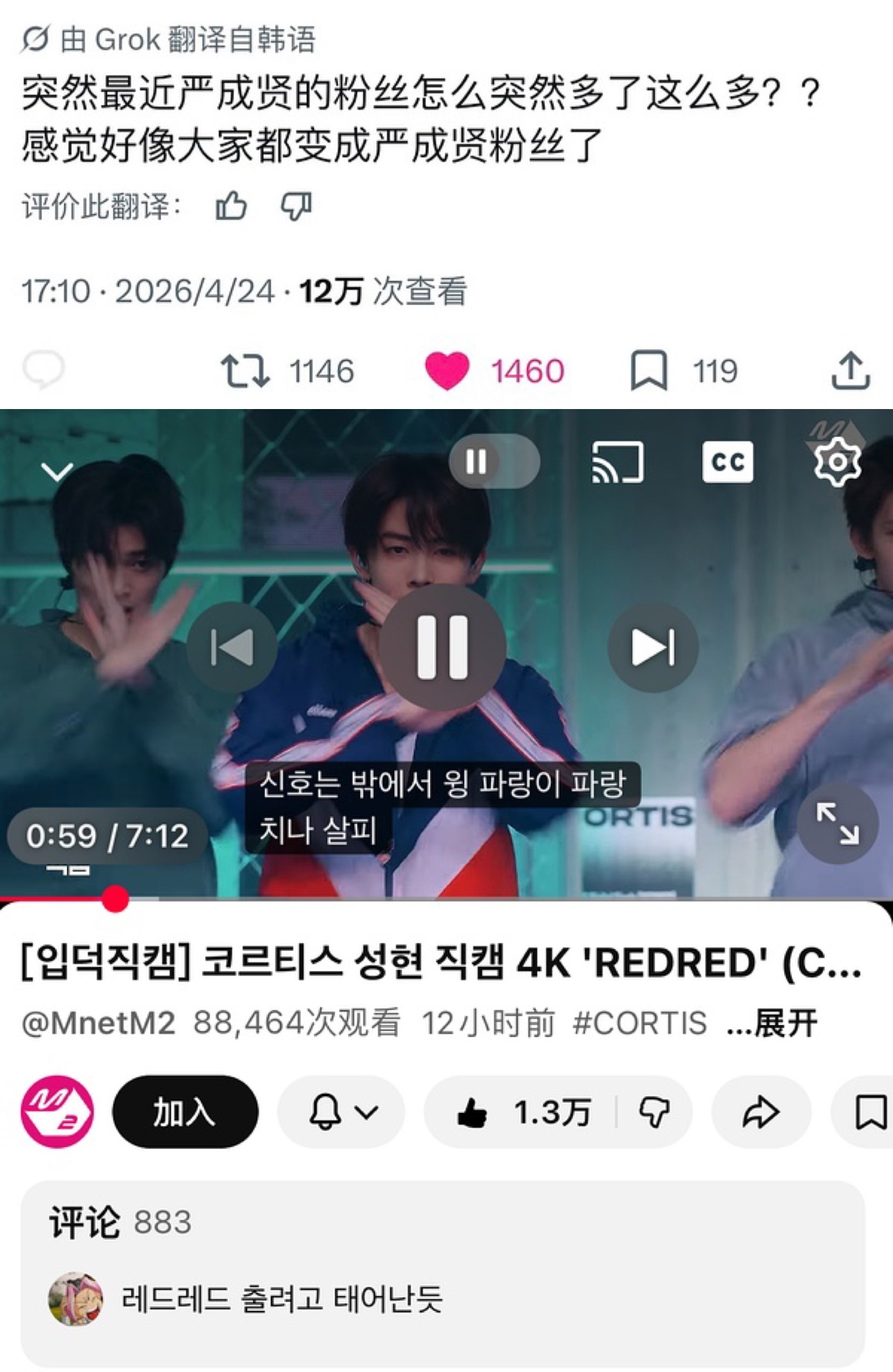 Cortis严成玹有效舞台一天之内舞台切片的浏览量都有这么高