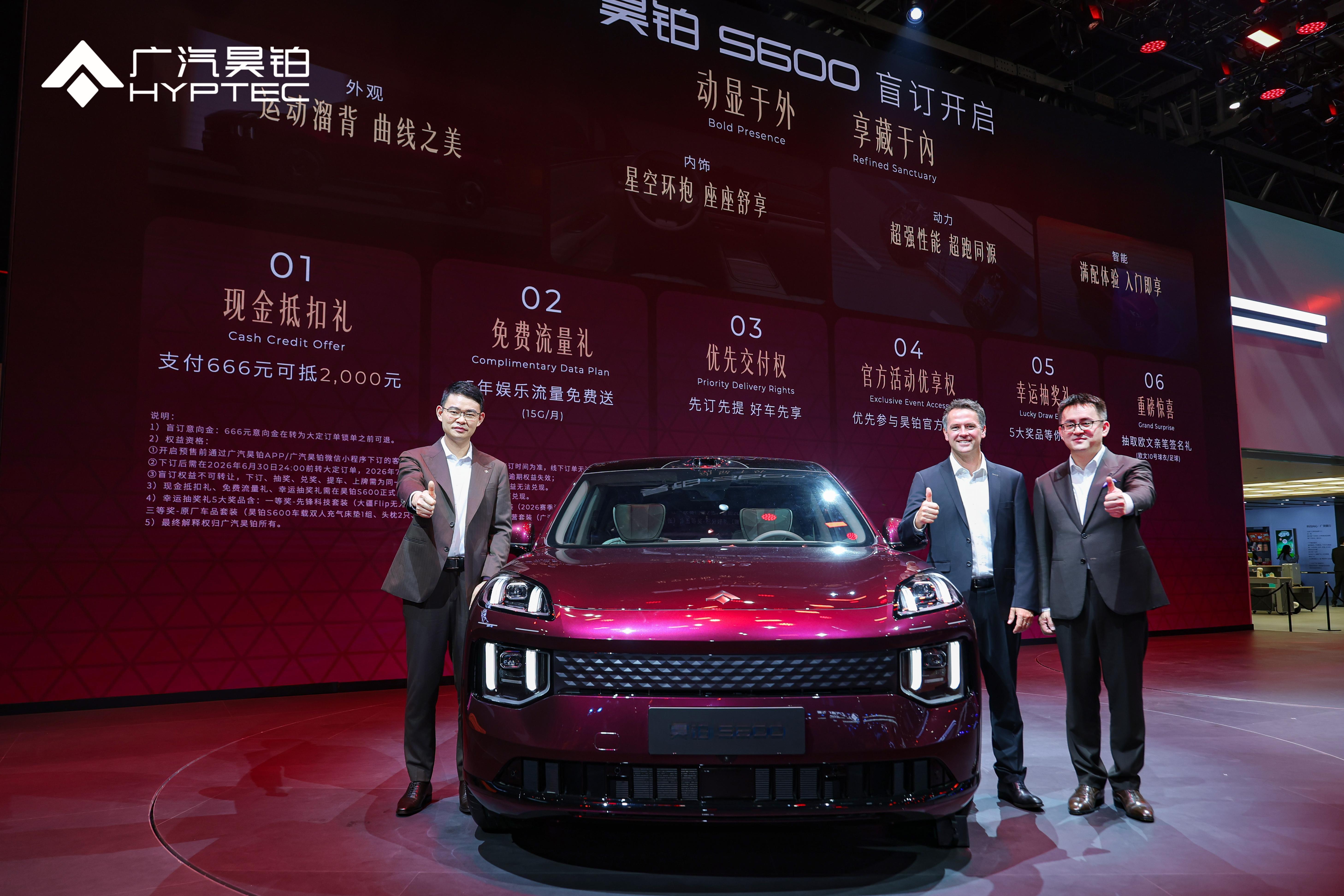 2026北京车展 4月24日,北京车展上,昊铂S600正式全球首发,同时开启盲订。666元意向金可以抵扣2000元购车款,还有5年免费娱乐流量、优先交付等权益。新车预计5月中下旬开启预售,定位30万以内的新豪华智慧运动SUV。