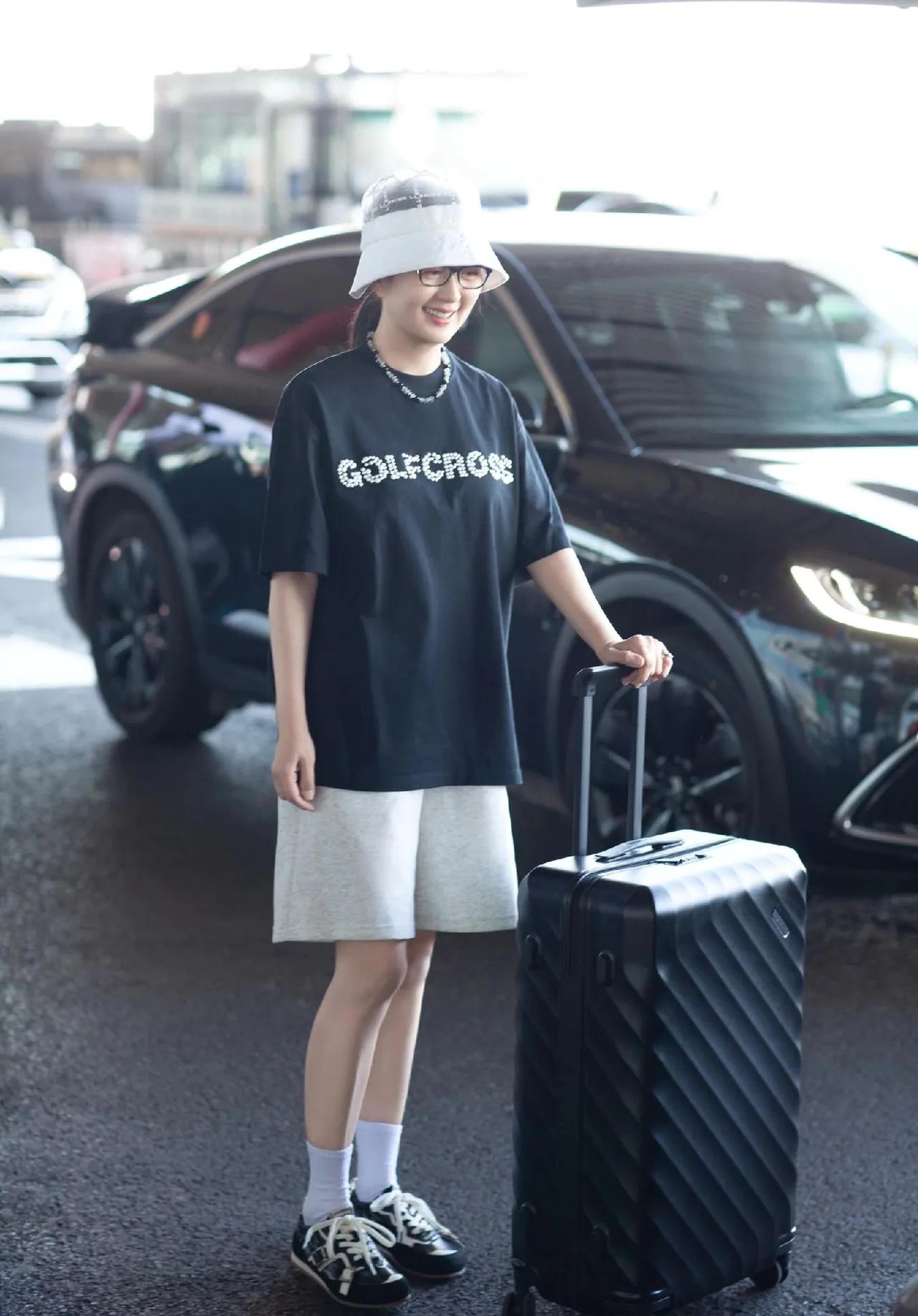 被杨童舒这套机场穿搭狠狠种草! 不挑身材的oversizeT恤+运动短裤,搭配渔夫帽和黑框眼镜,日常出门穿又舒服又时髦,懒人穿搭直接抄作业! 懒人穿搭 日常穿搭