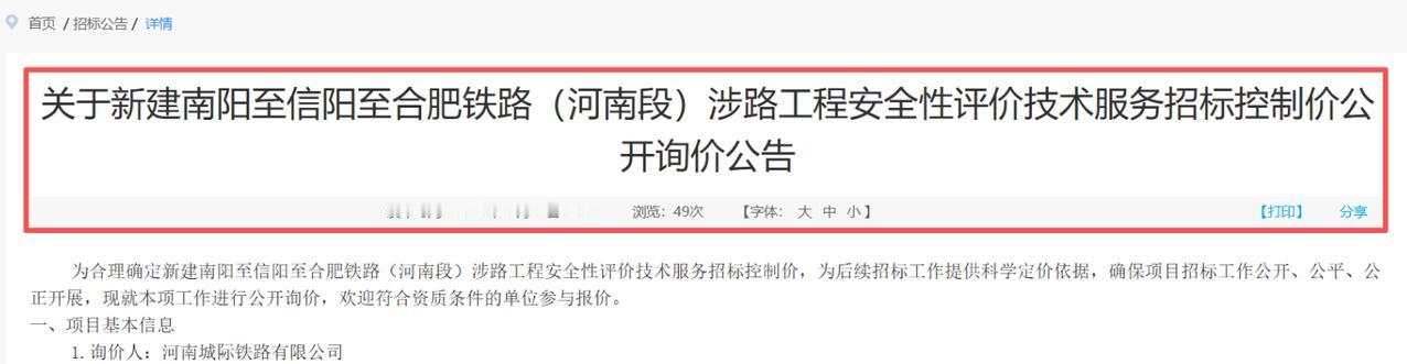 南信合高铁:站房设计深化,冲刺年底开工 2026年4月(站房设计深化):河南省已发布 南信合高铁河南段 的航道通航条件影响评价等招标公告,标志着站房设计的初步方案正进入深化阶段,为后续施工图设计提供基础。 2026年3月(关键审批加速):项目可行性研究咨询评估暨行业评审会已召开,为可研批复铺平道路。同时,全线环评、水保等初步设计前置手续正全面推进。 南信合高铁的建设,将彻底改变豫南地区高铁绕行郑州、武汉的历史,形成一条西北、西南至长三角的便捷新通道。