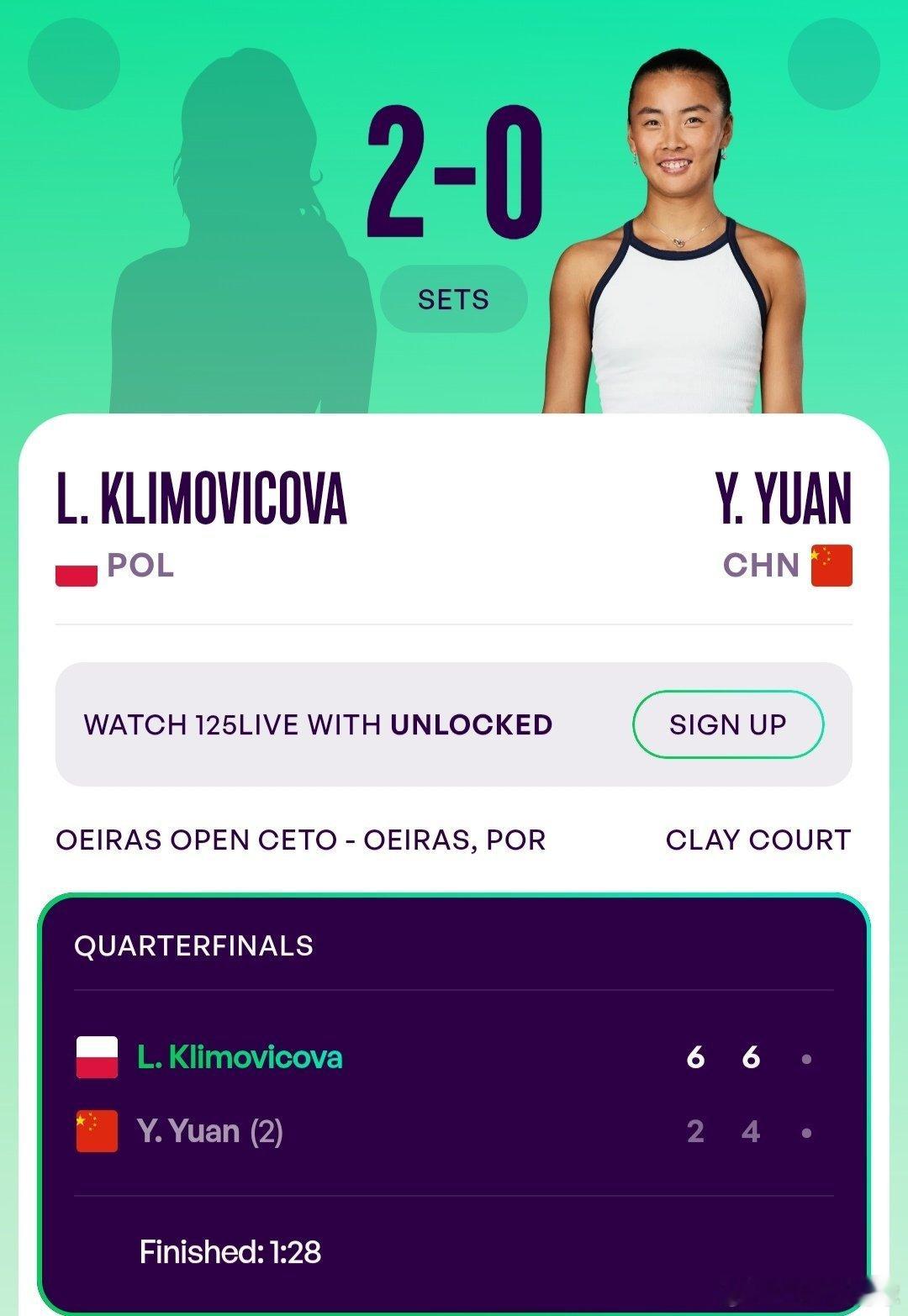 2号种子袁悦🇨🇳2-6/4-6不敌克利莫维乔娃🇵🇱,无缘半决赛,卫冕失败。下一站加油!