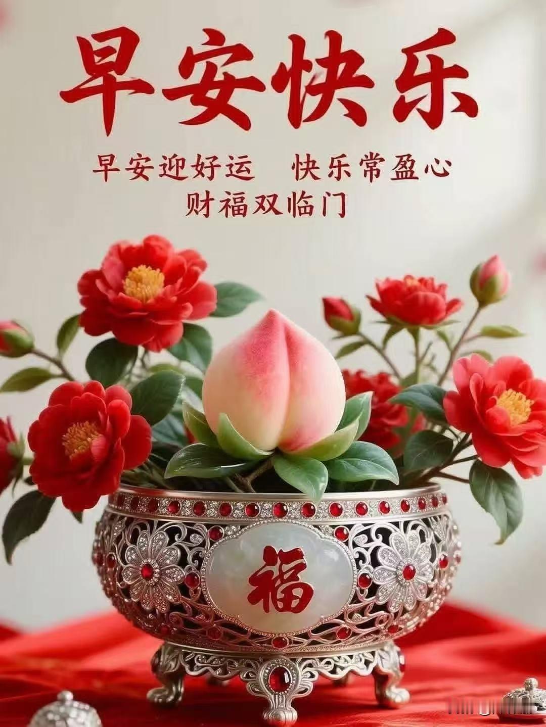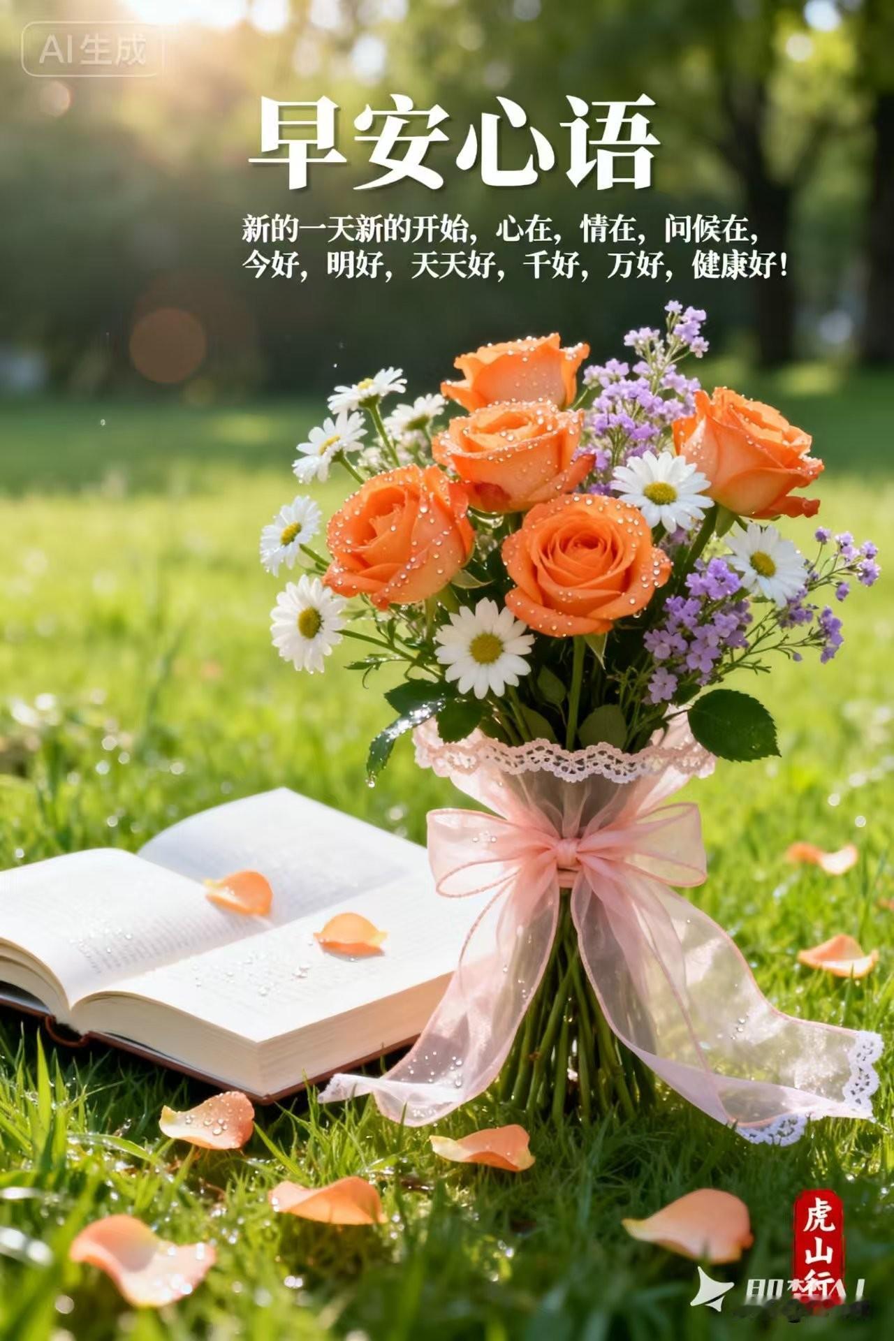 [心]早安心语[心] 晨光破晓映轩窗, 宿梦轻抛意气昂。 宿雾渐消山色朗, 朝霞初染柳丝长。 心怀壮志迎佳日, 目注前程向远乡。 且把闲愁皆放下, 早安一语韵流芳。 晓日初升照画屏, 清风拂面梦魂醒。 昨宵宿念随风逝, 此际新思伴韵馨。 心向远方寻胜境, 目随流云寄深情。 早安一语传佳讯, 愿尔今朝梦亦宁。 [福][玫瑰][心][祈祷]