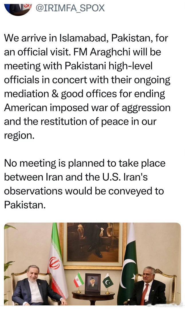 伊朗外长在巴基斯坦提出伊方要求,随即离开去阿曼,讨论形势没有等美方代表美国总统取
