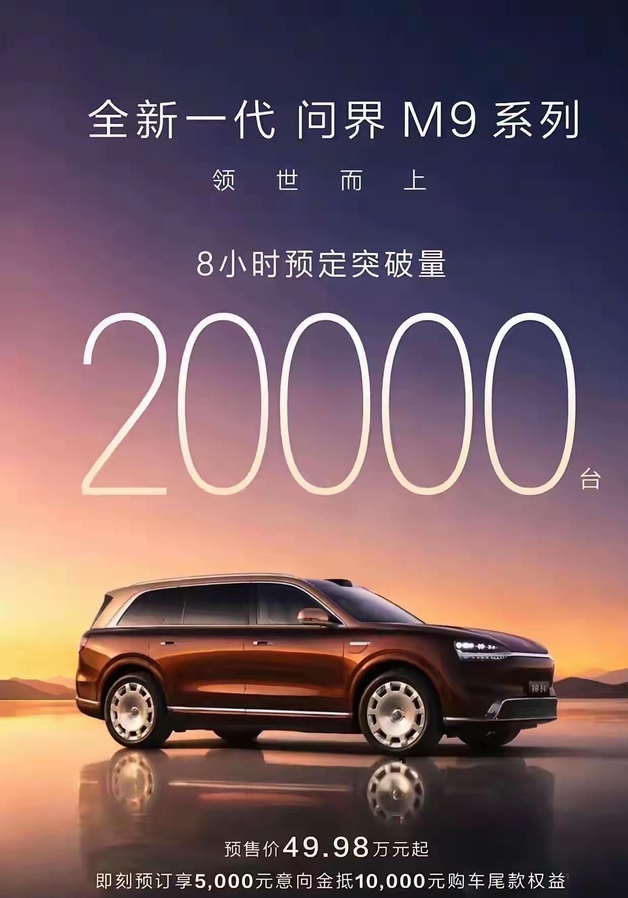 2026 款全新一代问界 M9 在北京车展隆重亮相! 这款 50 万级的旗舰 SUV 展现了极强的市场号召力,预售开启 1 小时,大定订单官方确认为 11500 台,8 小时内总预定量突破 2 万台,对于均价 50 万的产品属于现象级表现。 首发搭载华为乾崑智驾 ADS 5.0 系统,硬件上配备 6 颗激光雷达(含 1 颗舱内雷达),感知能力更强。 首次推出双尺寸战略。标准版轴距 3125mm;领世加长版轴距达 3236mm,车长超 5.4 米,二排支持旋转座椅,空间体验接近 MPV。 纯电版电池容量提升至 120 kWh,CLTC 续航最高达 750 km;增程版升级为 800V 高压平台,充电速度更快。
